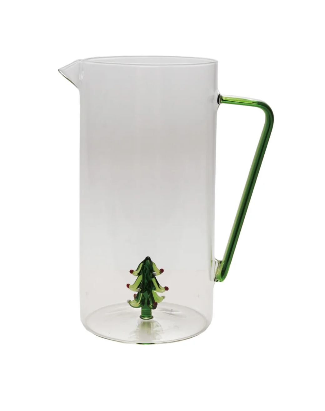 Serve drinks in style this holiday season with this whimsical 3-Quart Glass Pitcher featuring a hand-blown tree suspended inside. Measuring 6-1/2" L x 4" W x 8" H, this charming pitcher adds a playful, nature-inspired touch to any table setting. Ideal for entertaining guests or everyday use, it’s perfect for refreshing beverages during holiday gatherings or meals. Hand wash only; not microwave safe.
