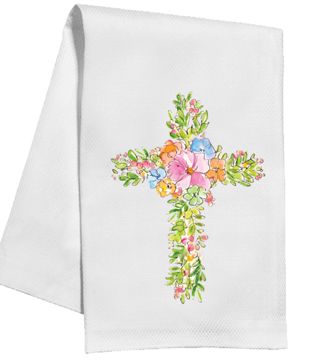 HANDPAINTED SPRING FLORAL CROSS KITCHEN TOWEL