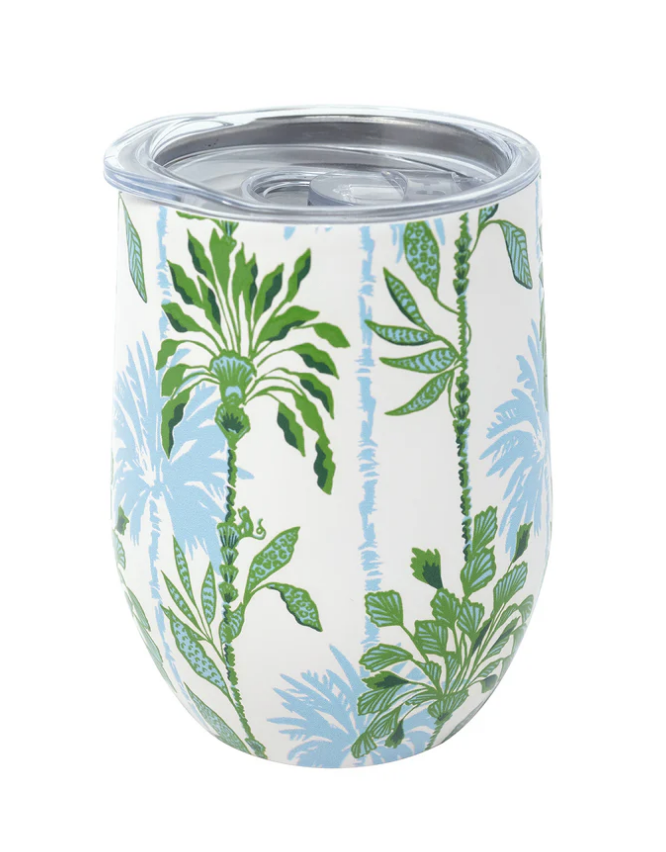 Whether it's a happy hour cocktail or a chilled glass of bubbly this stemless tumbler in Swayin in the Breeze lets you sip in style. The double-wall, stainless steel body keeps your beverages cold, while a clear, acrylic lid ensures no spills.