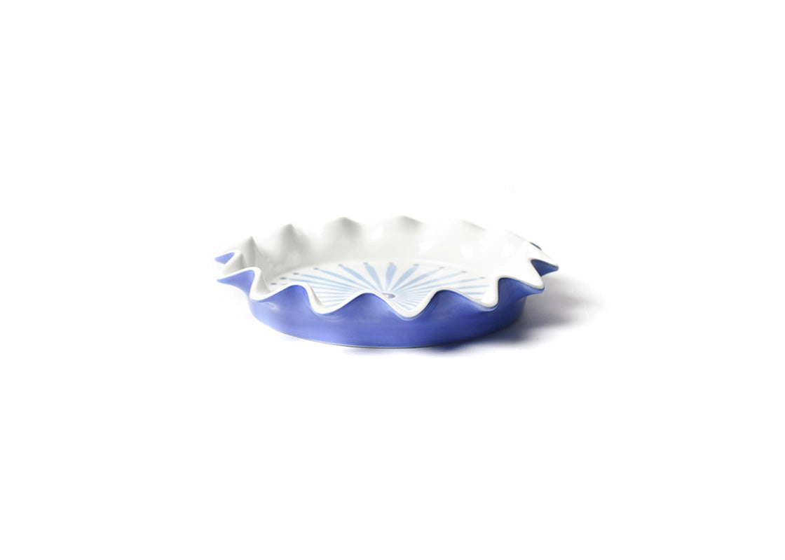 Expand your bakeware collection and bring bursts of blue to your kitchen with our Iris Blue Burst Ruffle Pie Dish. Use this upgraded pie dish to highlight your favorite recipes and continue our best-selling pattern story throughout your cookware. This ceramic dish is supremely functional and designed to nest with other pie dishes when not in use. Elevate your gifting with a homemade pie in a ruffled edge dish that will make itself at home in any kitchen. This ceramic pie dish (10in Diameter x 1.75in H) is dishwasher safe, oven safe, and freezer safe.