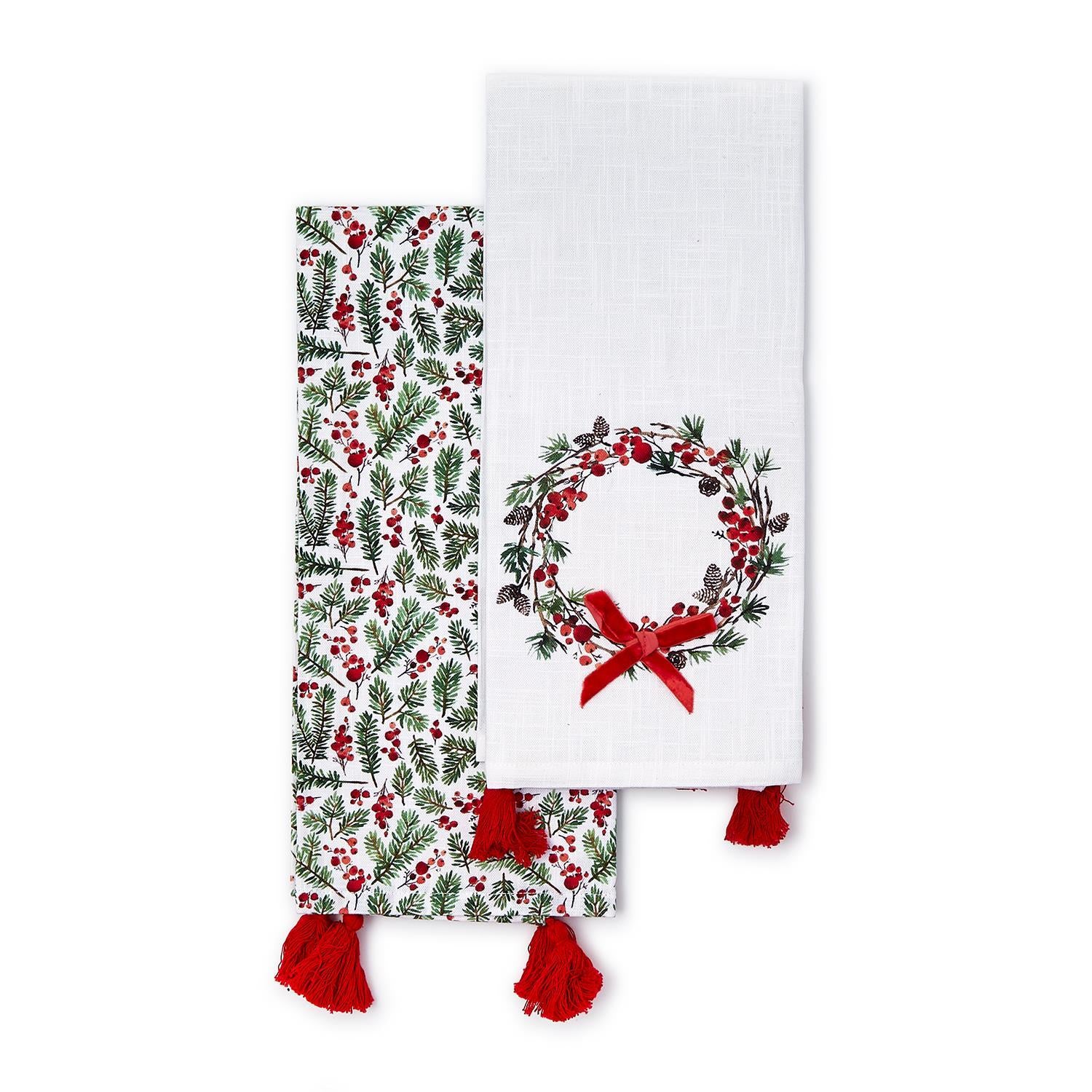Merry Berry Set of 2 Dish Towels with Velvet Bow Accent and Tassels