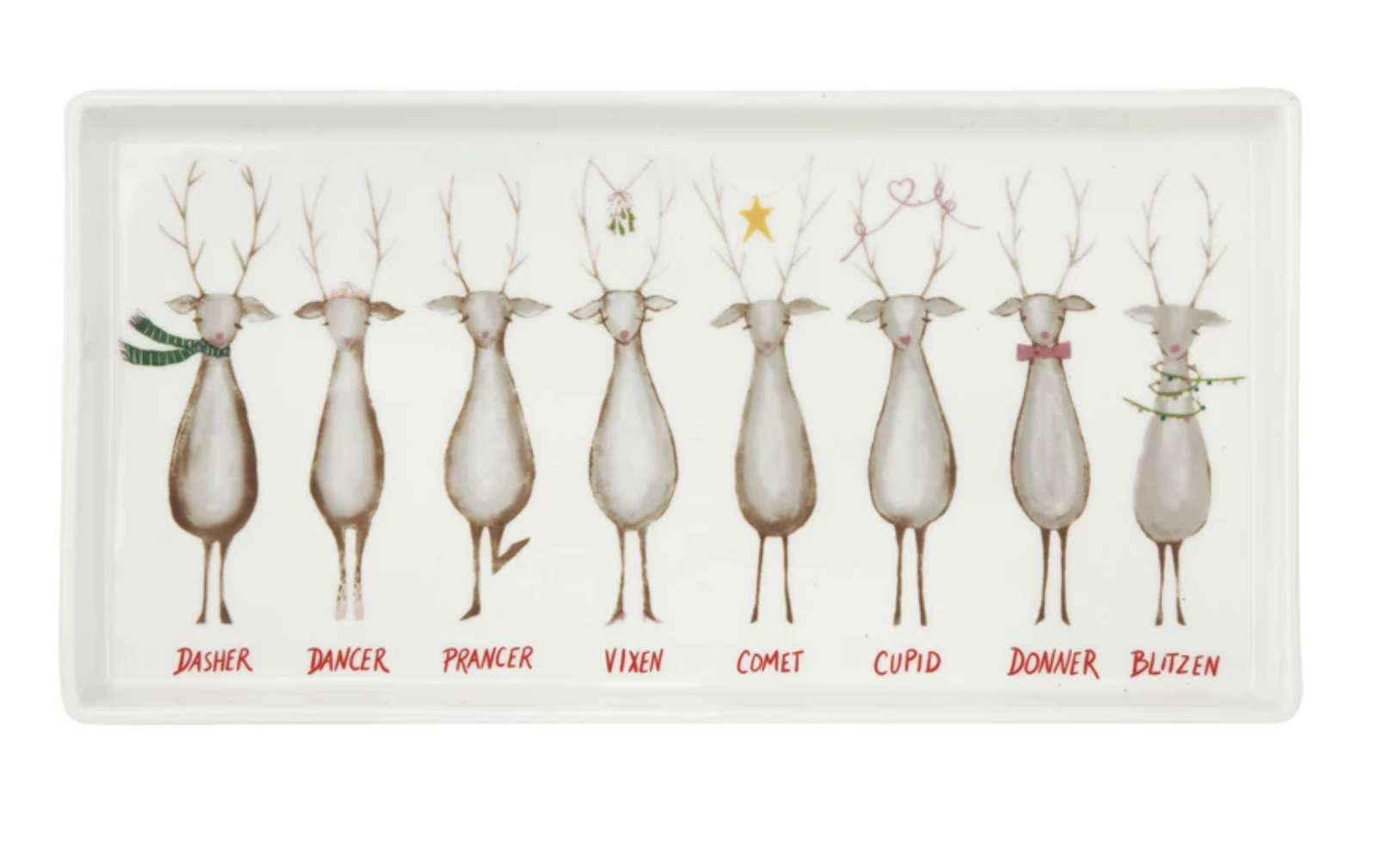 Celebrate the holiday season with this charming Stoneware Platter featuring Santa’s Reindeer. Measuring 12-3/4" L x 6-1/2" W, this durable platter is perfect for serving festive treats, appetizers, or displaying Christmas décor. Crafted from high-quality stoneware, it adds a whimsical holiday touch to your table or kitchen collection.
