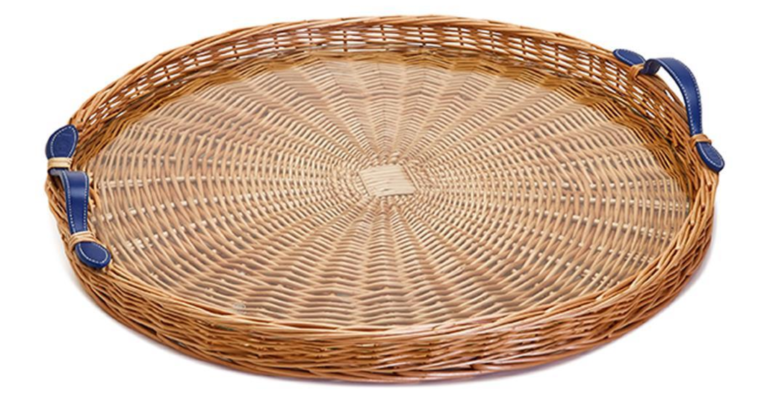 The craft of basket weaving is a centuries-old tradition with enduring appeal. Inspired by a 19th century antique, this this large-scale round tray is made from willow and is a true work of art with a rustic, handmade beauty. Accented with vegan leather handles, each comes with an acrylic liner creating more sturdiness when serving.