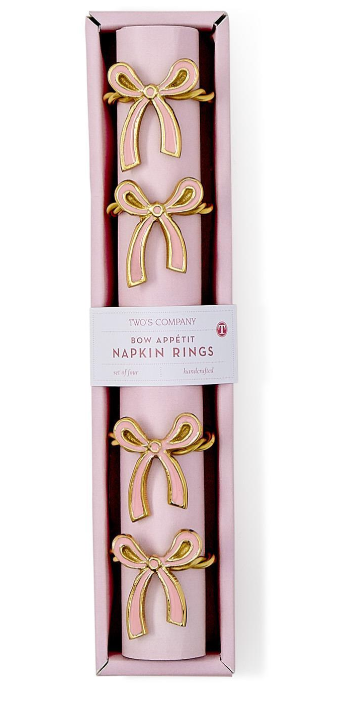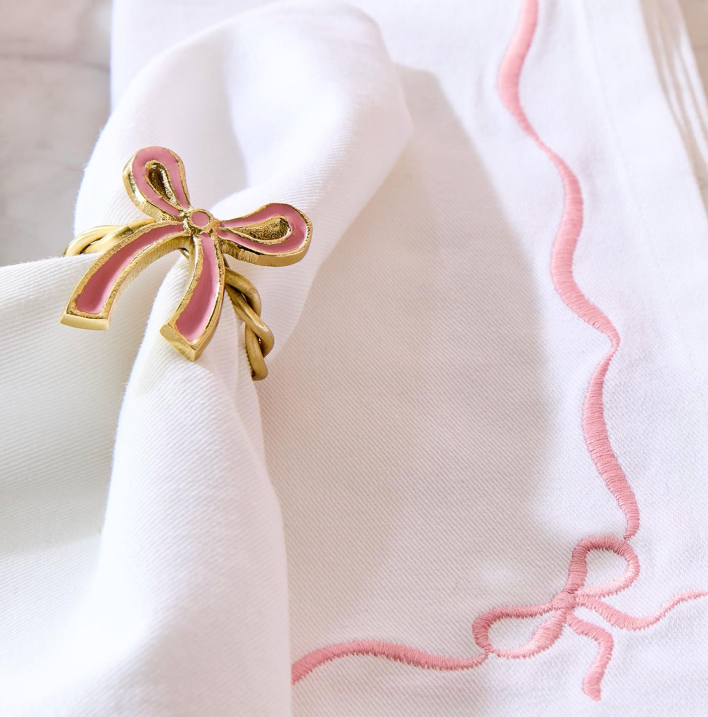 Set of 4 Bow Napkin Rings in Gift Box - Nickel/Gold Enamel