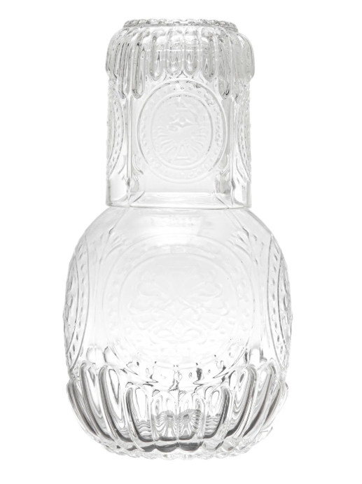 28 oz. Embossed Glass Carafe w/ 8 oz. Embossed Drinking Glass