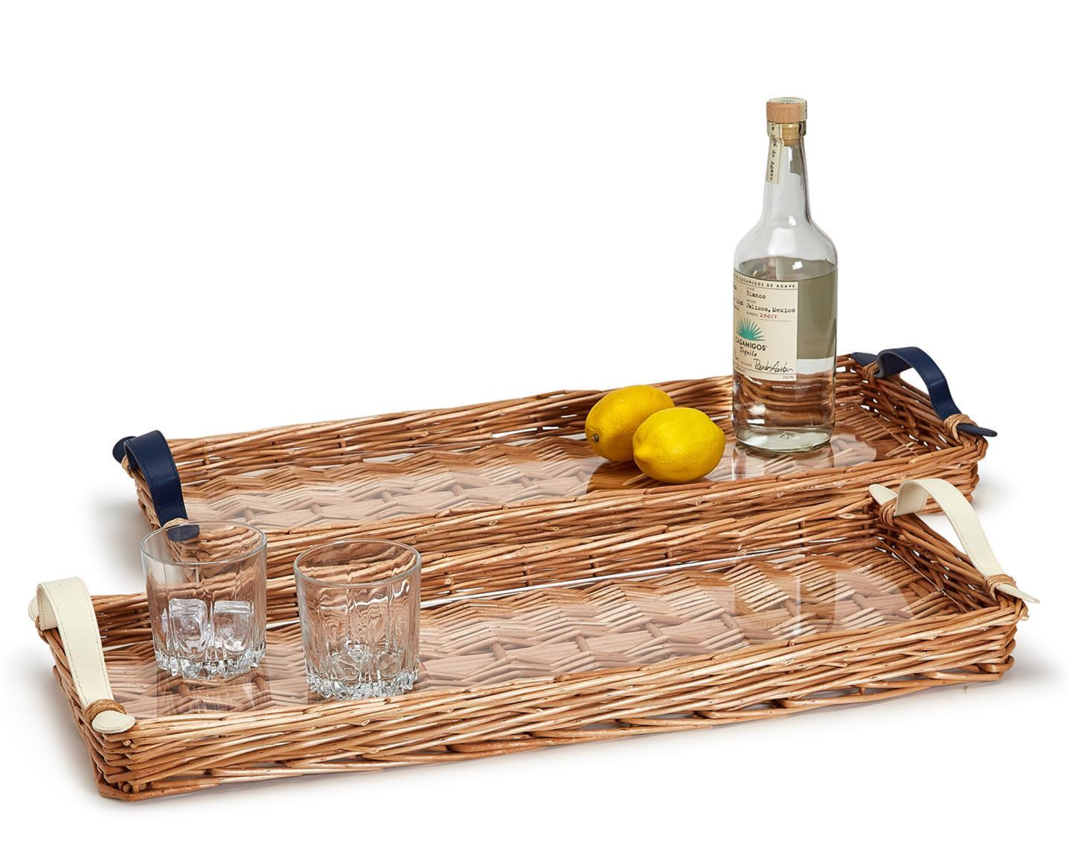 Long Bar Wicker Tray and Acrylic Insert with Handles