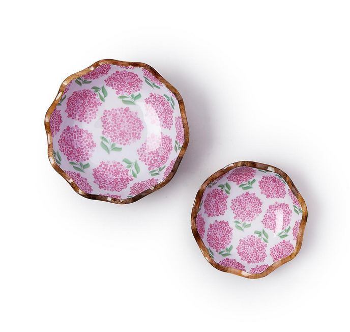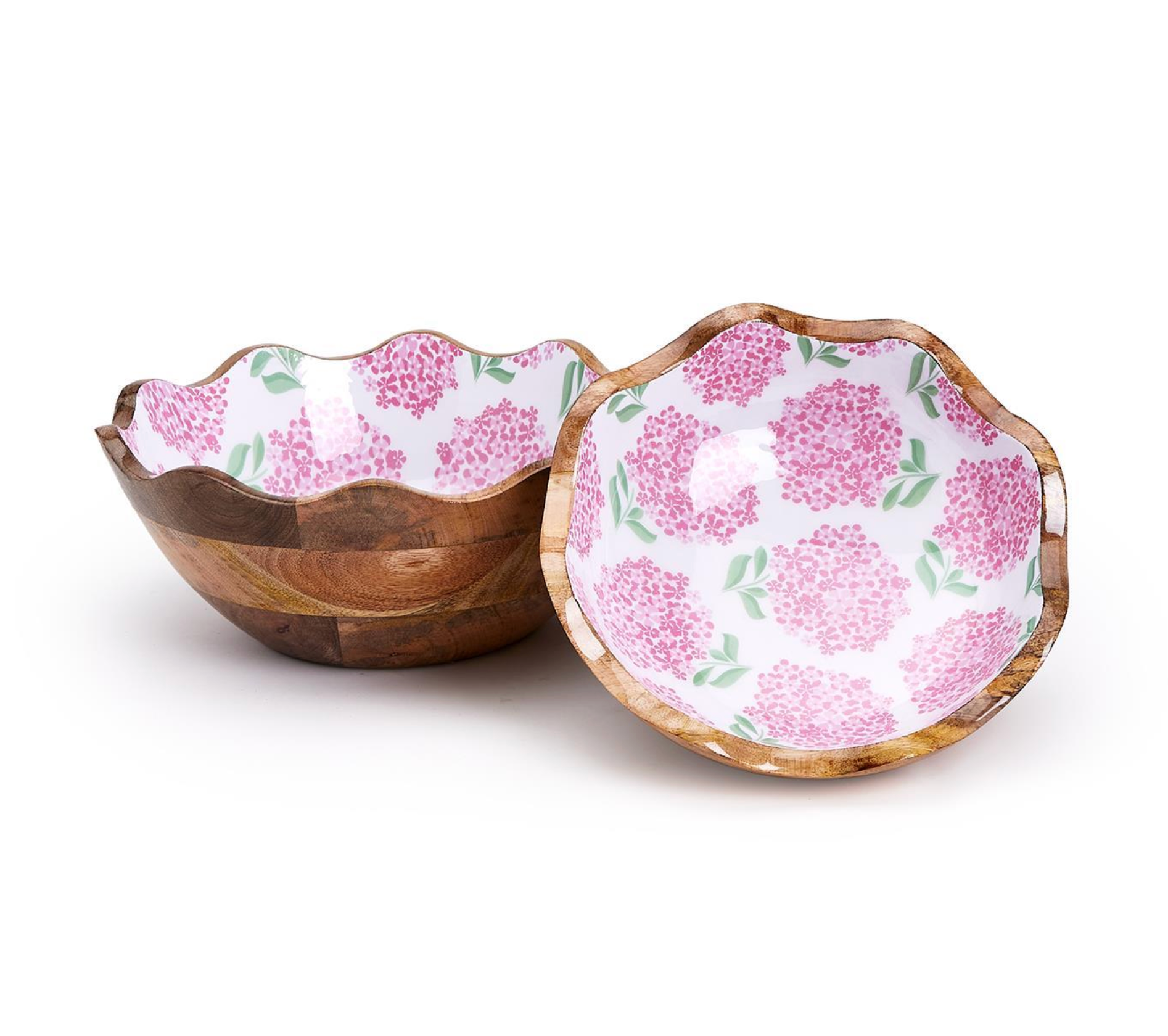 Pink Hydrangea Hand-Crafted Scalloped Edge Wood Bowl