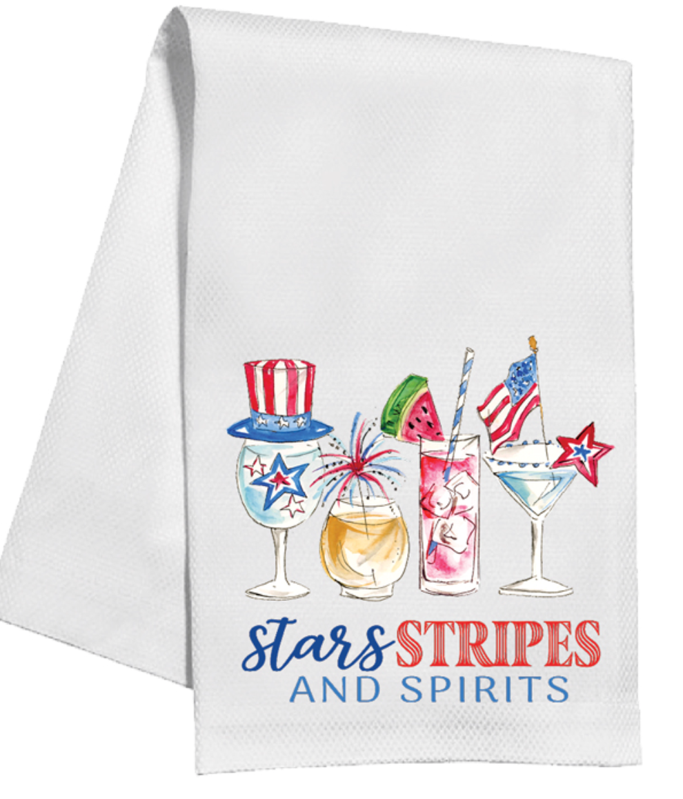 HANDPAINTED PATRIOTIC ROCKETS FIREWORKS AND FREEDOM KITCHEN TOWEL