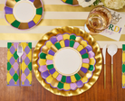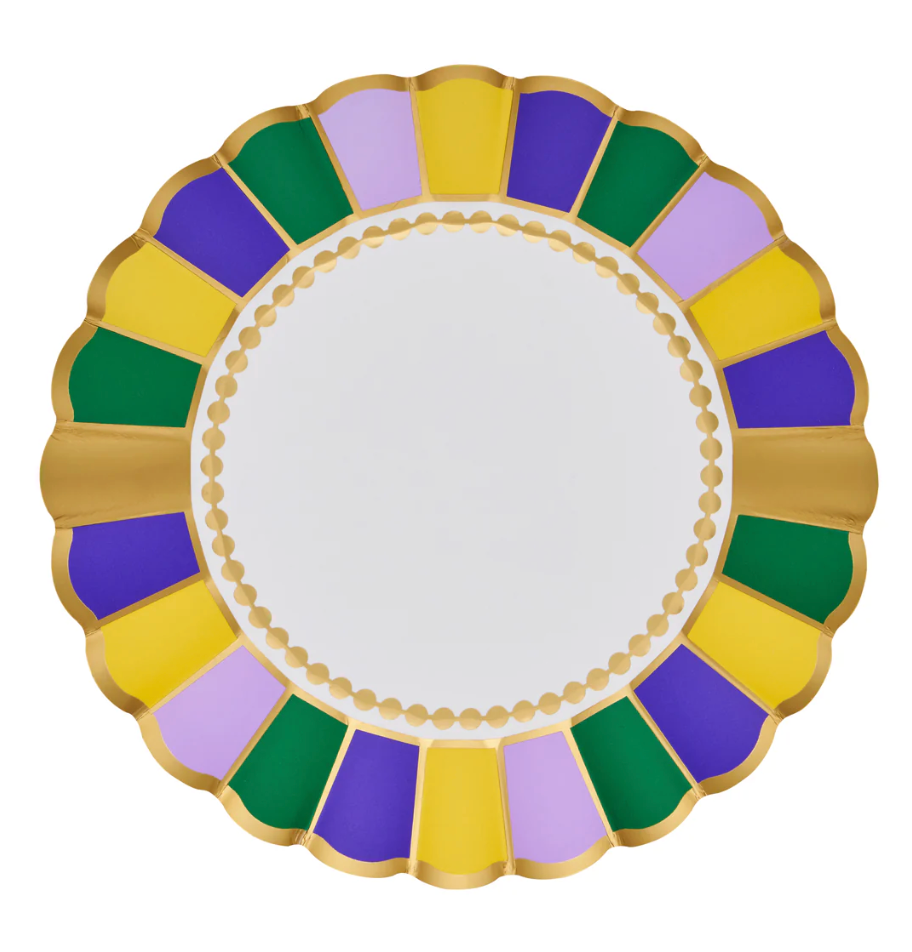 These scalloped-edge salad plates from our Let’s Mardi collection showcase vibrant Mardi Gras hues of yellow, purple, green, and gold. Their festive palette and playful design bring instant celebration to the table, making them perfect for adding a burst of fun and color to any gathering. Ideal for Mardi Gras parties, themed dinners, or joyful occasions that call for bold, spirited flair.