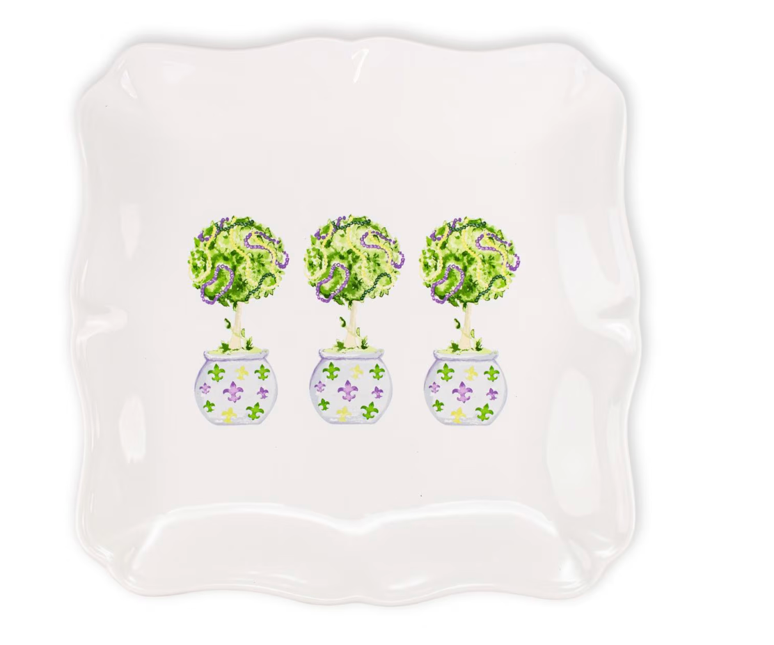 Bring the party to the table with this Mardi Gras Bead Rectangle Platter! Dressed in classic Carnival colors and playful bead details, it's perfect for serving up treats, appetizers, or a slice of king cake in festive style. Whether you're hosting a Mardi Gras celebration or adding a splash of New Orleans charm to your gathering, this platter transforms any spread into a showstopper. Ideal for both casual get-togethers and themed events.