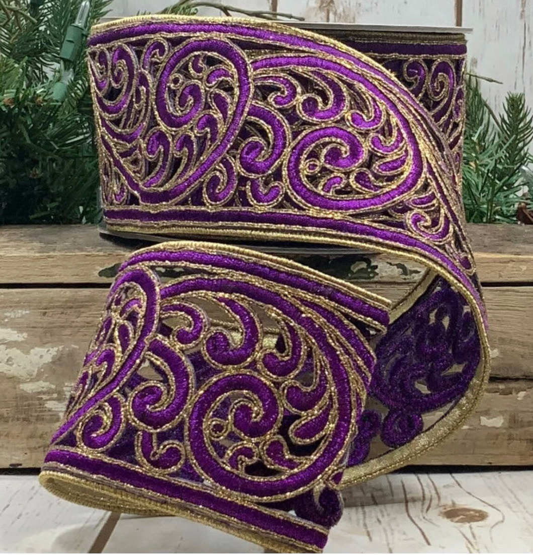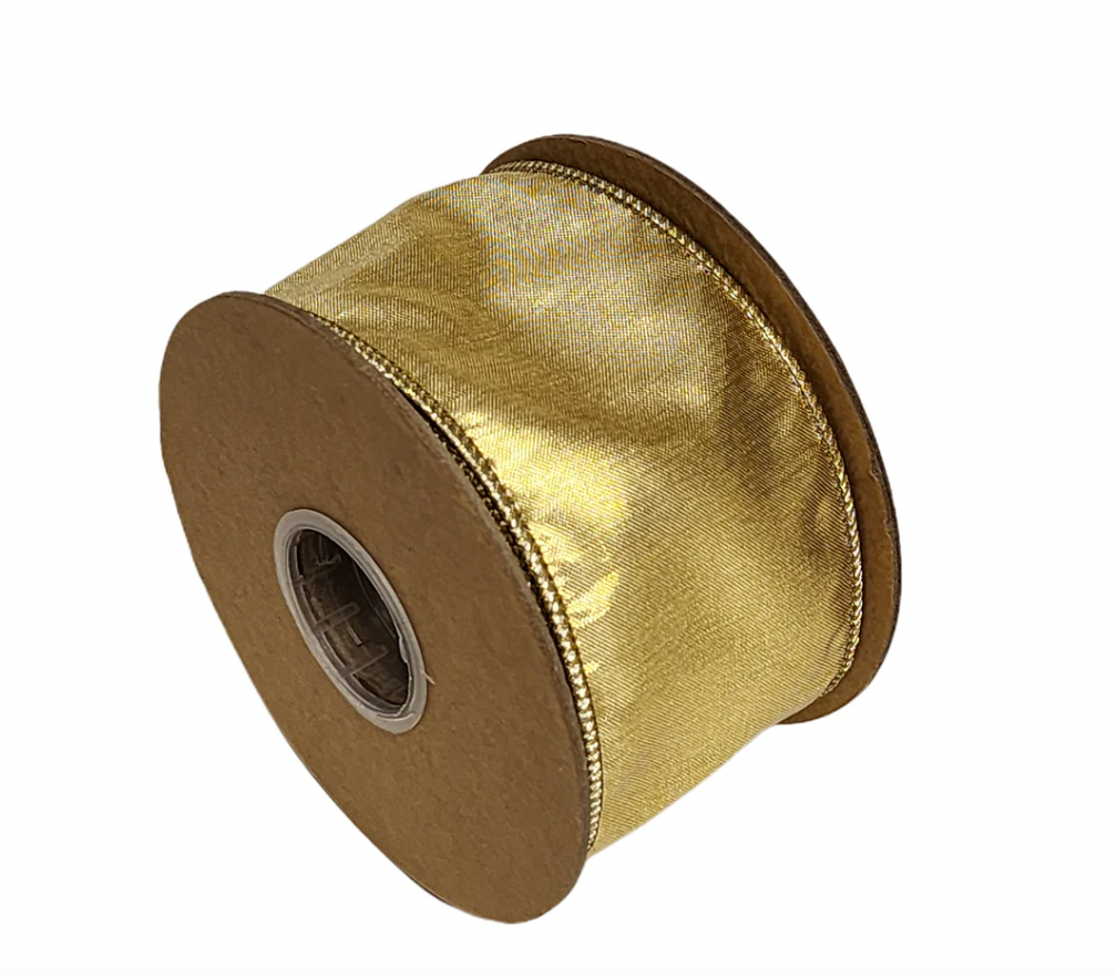2 1/2" Wired Metallic Dupioni Ribbon | Bright Gold | 10 Yard Roll