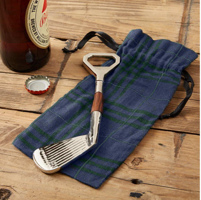 Golf Club Bottle Opener in Plaid Gift Pouch