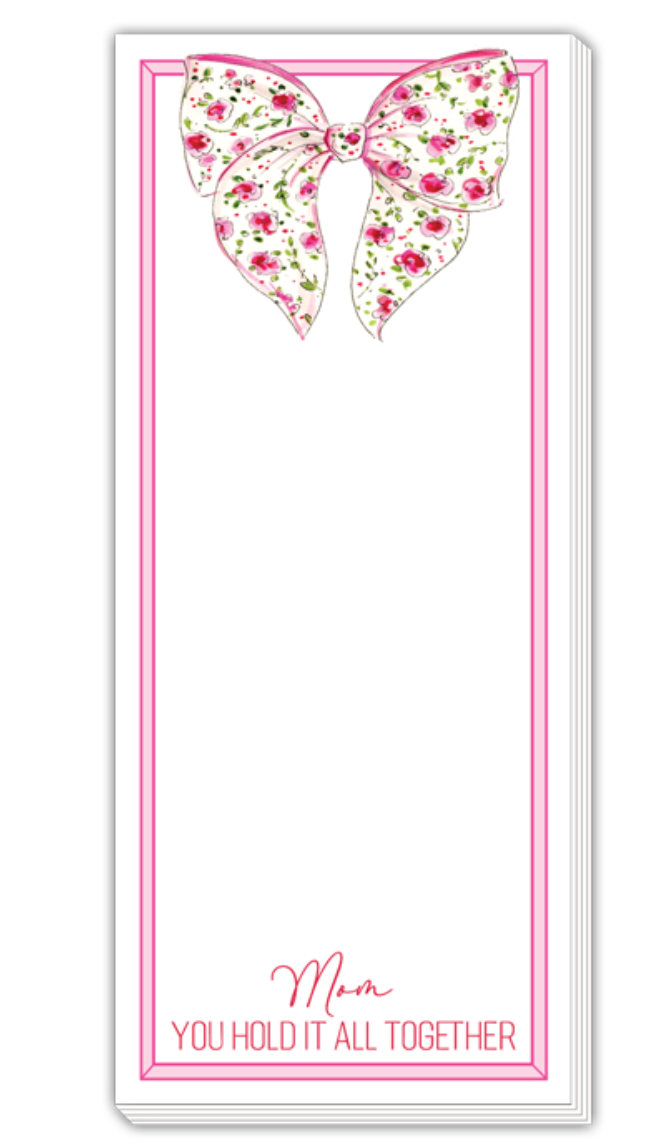 HANDPAINTED MOM YOU HOLD IT ALL TOGETHER PINK FLORAL BOW SKINNY NOTEPAD
