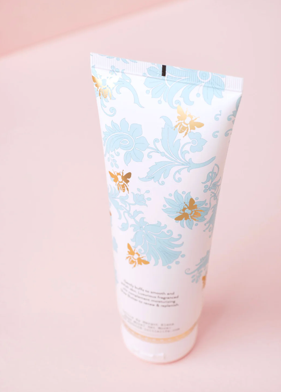 Golden bees buzz across a satin-touch tube of blue French-inspired foulard. Delicate gold detailing brings a touch of sophistication to any shower. Pairs perfectly with the Perfumed Shower Gel.
