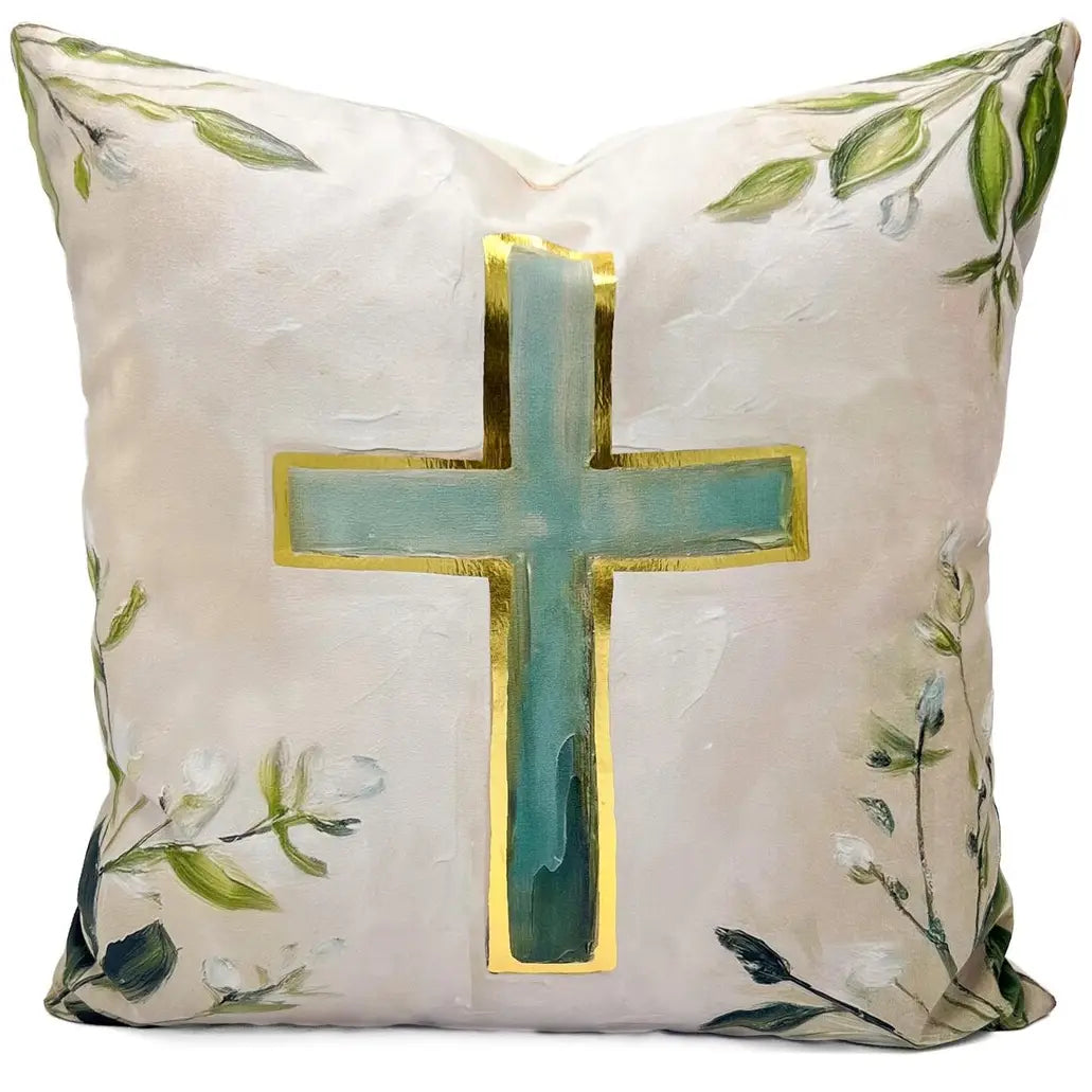 Gold Foil Painted Teal Cross Pillow