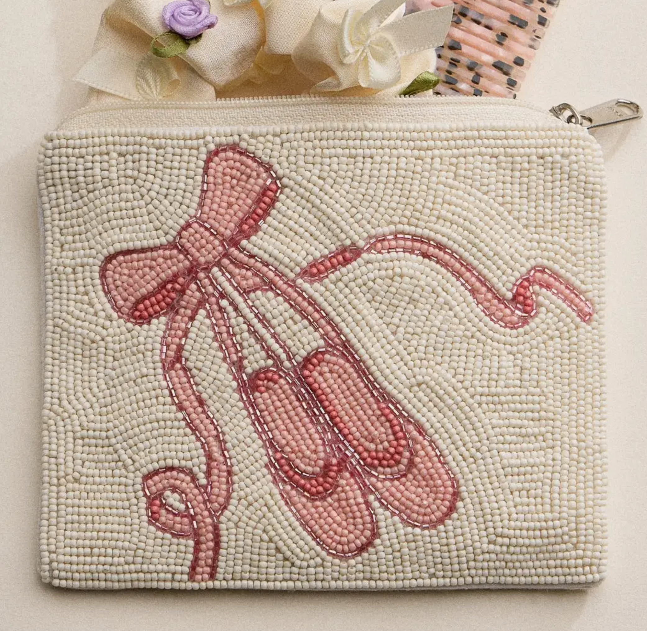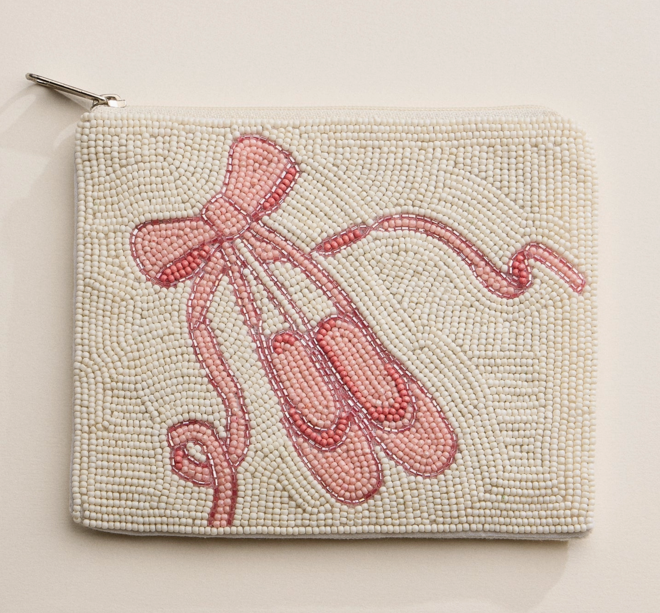 Pink Ballet Beaded Zipper Pouch