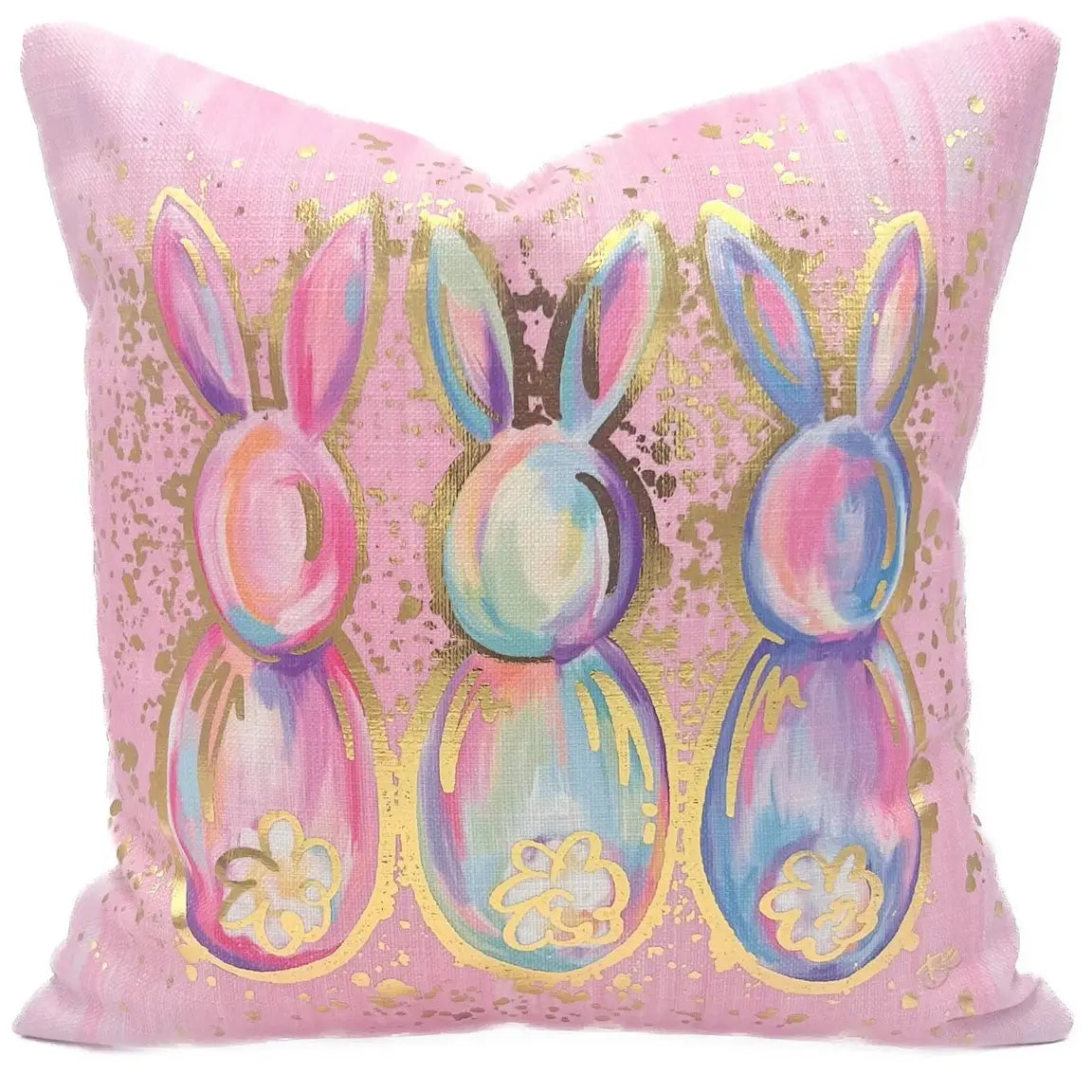 Gold Foil Pink Splatter Bunnies Pillow