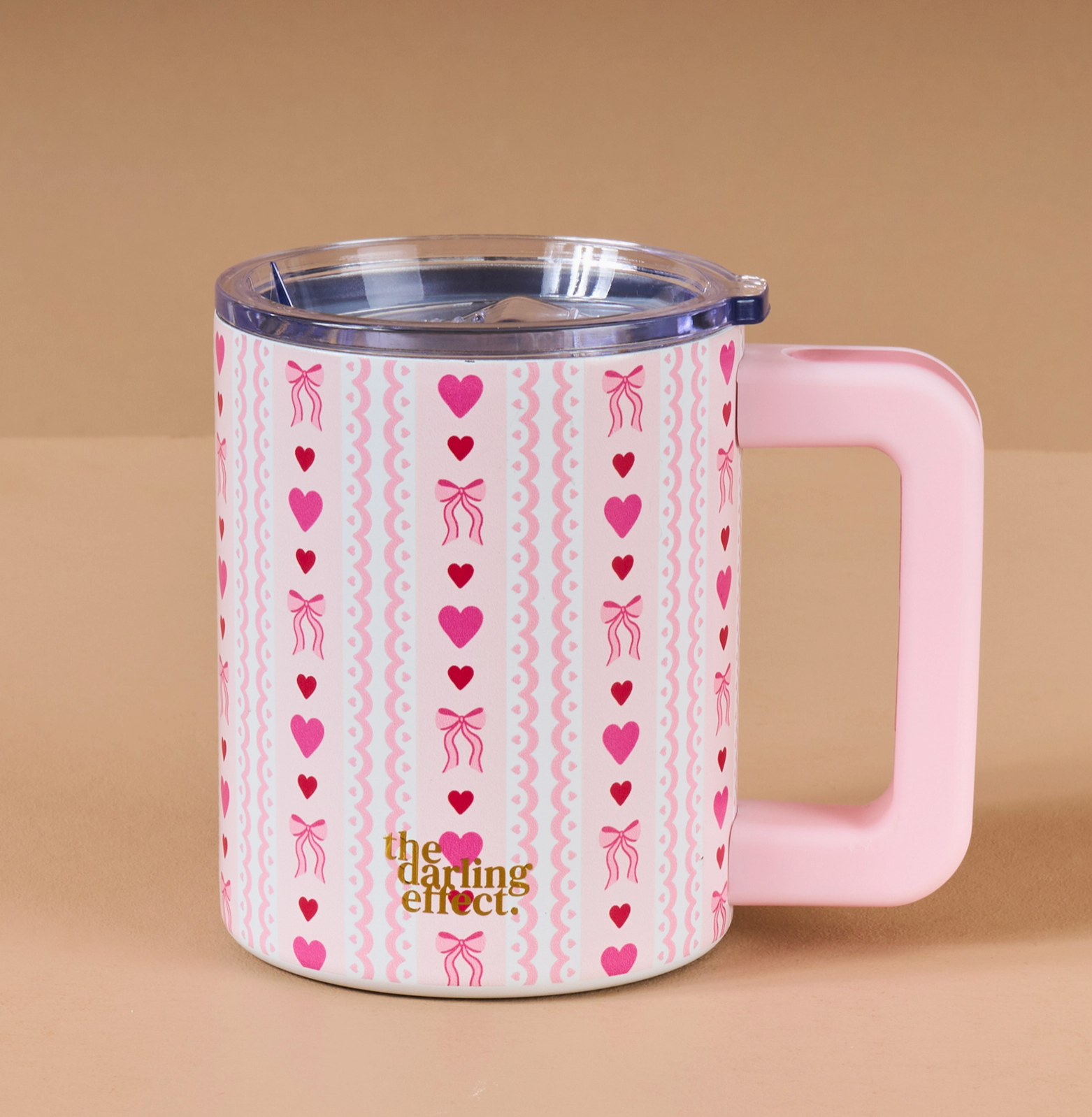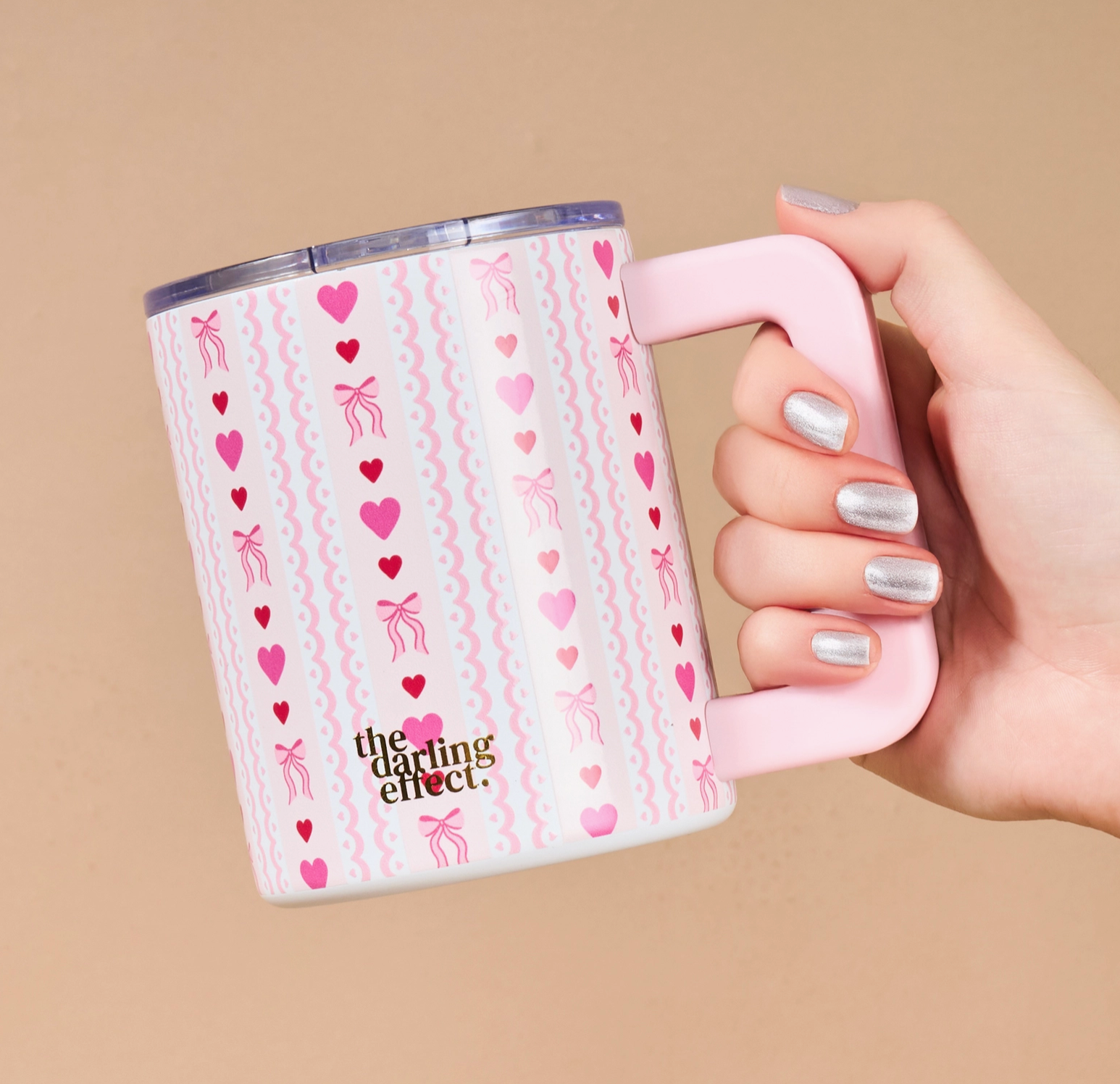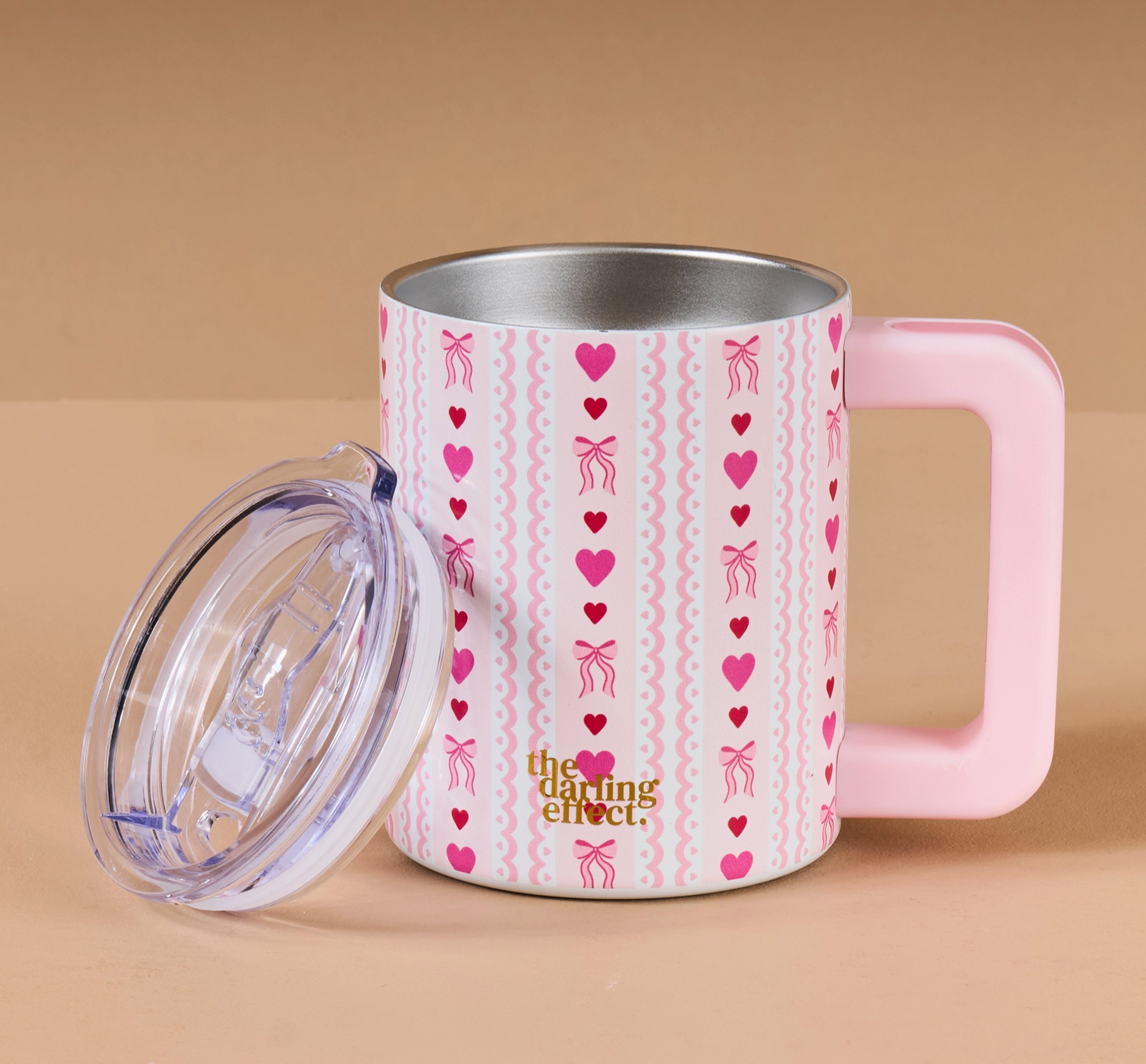 Keep your favorite drinks warm and full of love with our insulated mugs. Perfect for slow mornings, sweet sips, and cozy nights in. Featuring darling Valentine’s designs, these mugs add a heartwarming touch to every cup and make every moment feel a little more special. Whether it’s coffee with your Valentine or cocoa for one—you’ll fall for this mug again and again all season long! Featuring our Oh So Lovely print from our Be Mine collection 14 oz insulated mug Large, comfortable handle with soft silicone grip Sliding closure lid Stainless steel interior Triple-walled insulated BPA Free