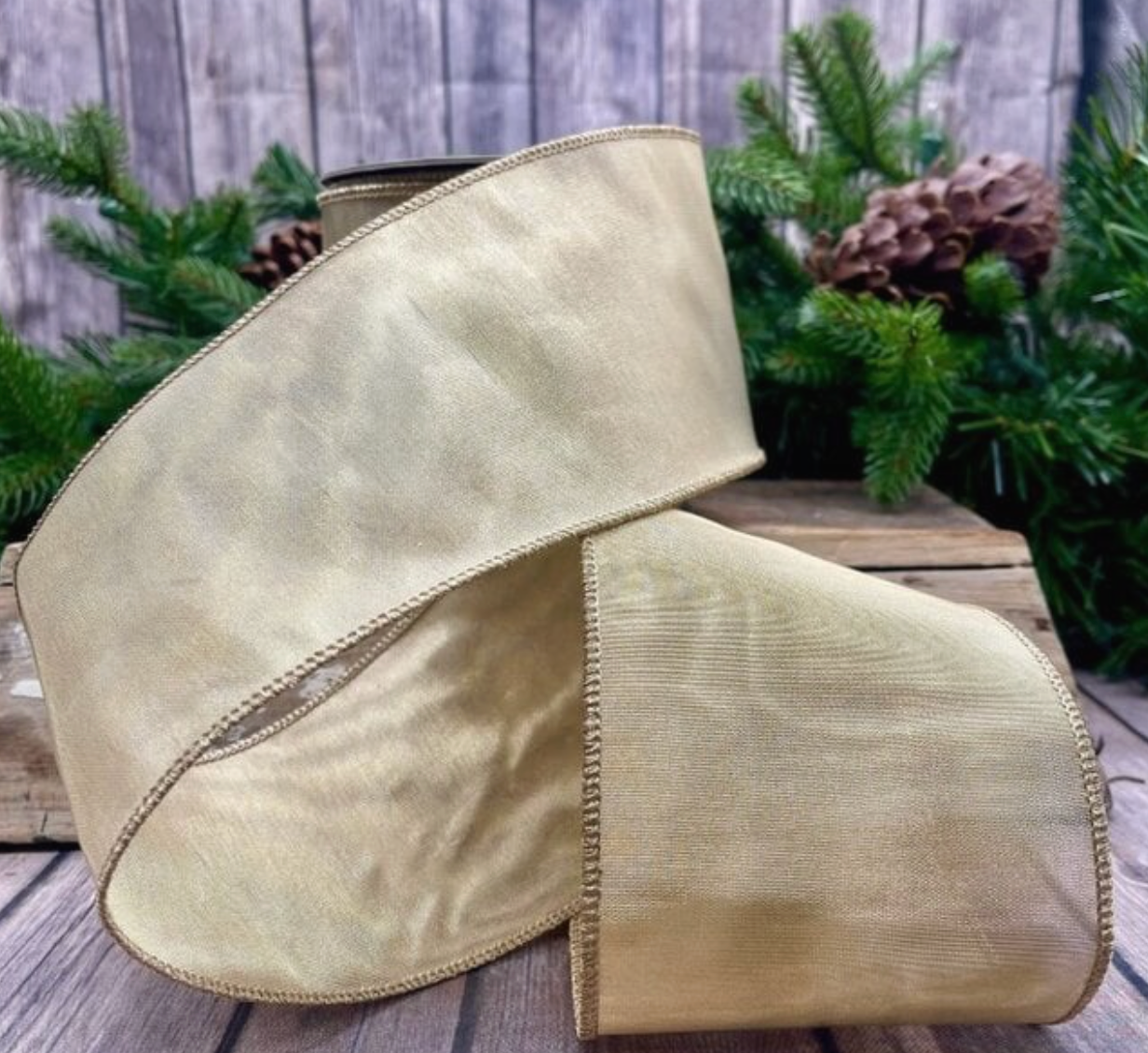 Elevate your gift presentation with this refined 4" ribbon featuring a luxurious linen base accented with shimmering gold lurex threading. The tissue backing provides structure and versatility, making it ideal for wrapping, bows, and decorative embellishments. Perfect for upscale gift wrapping, event styling, and premium packaging applications. Its sophisticated metallic shimmer adds an understated elegance to any occasion.