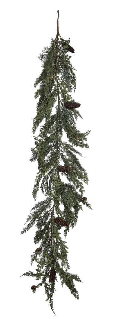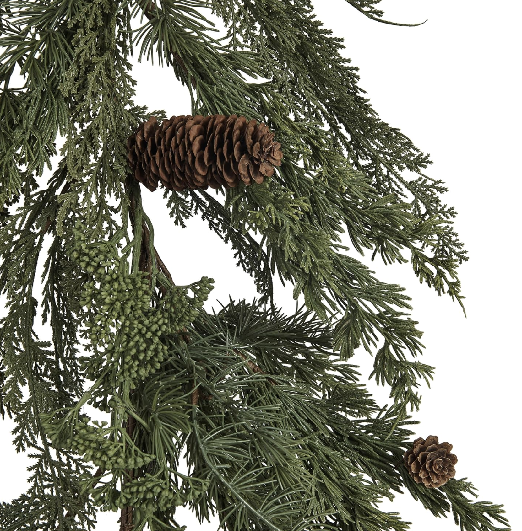 Bring the forest indoors with this lush faux garland! Draping beautifully across mantels, doorways, and walls, it combines realistic spruce and pine foliage with genuine pinecones for that authentic woodland charm. No watering required—just endless seasonal style. Perfect for holiday decorating, special events, or adding year-round natural texture to any space. This versatile green garland works solo or layered with lights and ribbons for extra festive flair.