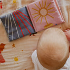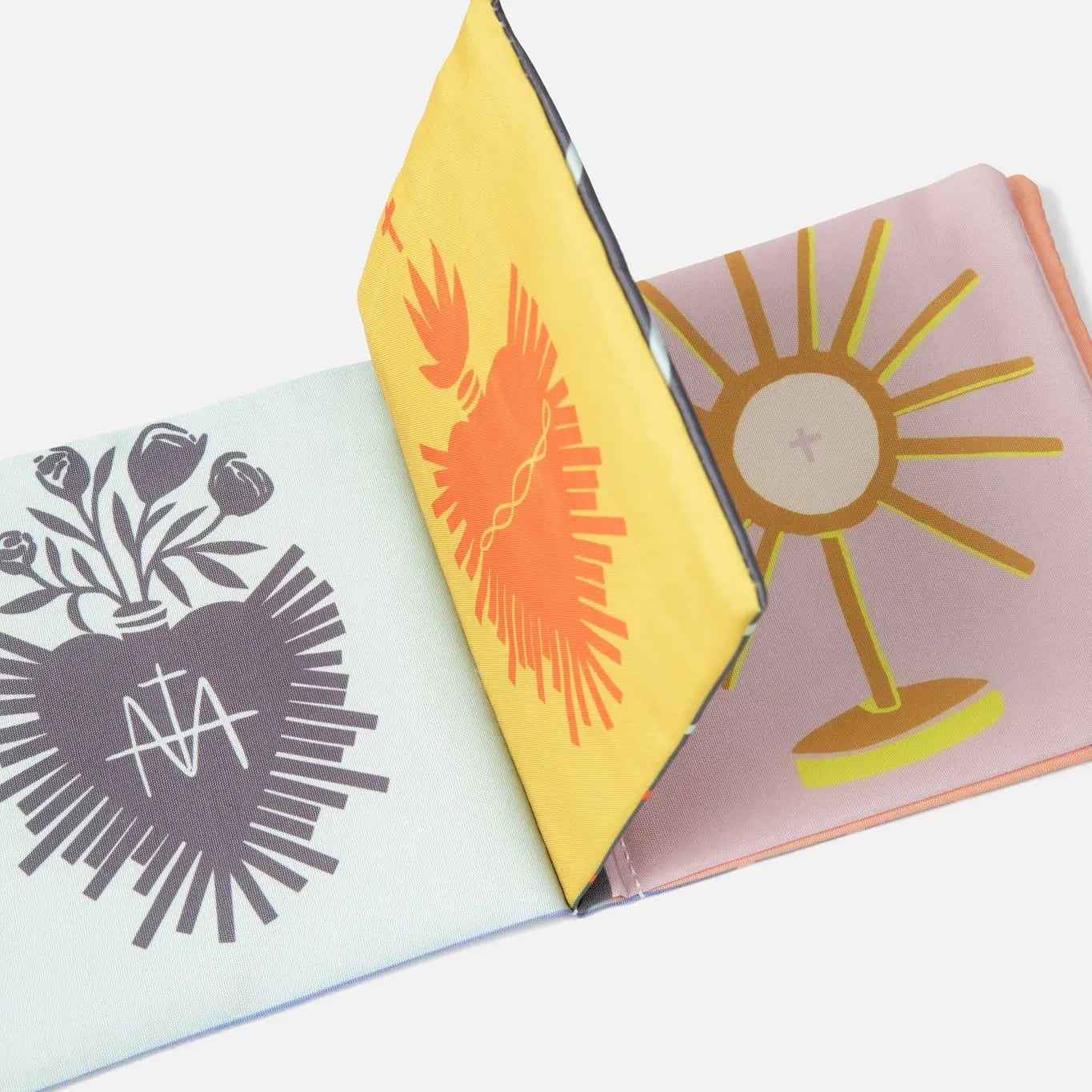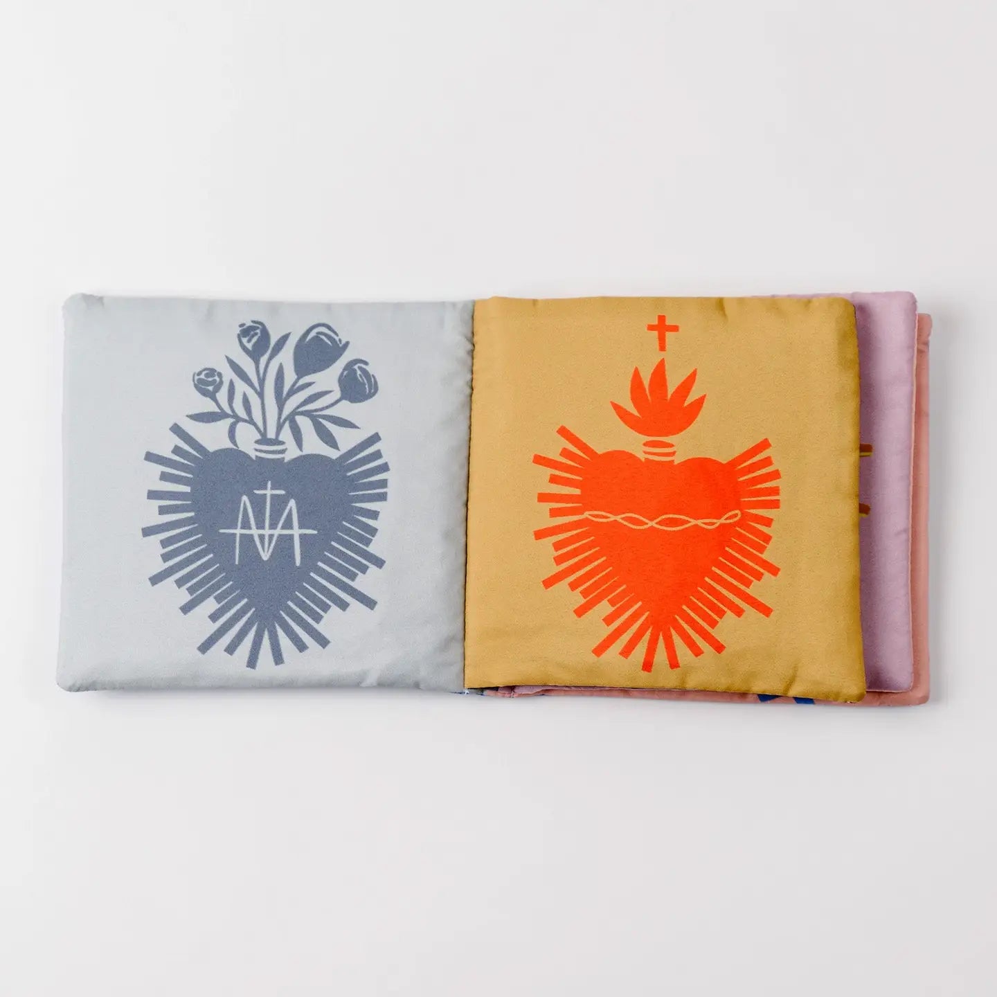 * High Contrast Colors: High contrast colors in the book aid in developing baby's eyesight by making it easier for them to focus and differentiate shapes and patterns. * Crinkle Paper: The crinkle paper inside stimulates auditory and tactile senses, helping babies develop fine motor skills and enhancing their sensory exploration. * Design:includes different Catholic devotions - The Immaculate Heart of Mary, the Sacred Heart of Jesus, Divine Mercy, a monstrance, the Miraculous Medal, and the rosary that will remind caregivers to take a moment to pray! * Care Instructions: Hand wash with warm water and mild soap, lay flat to dry * Product Details: 60% cotton+40% polyester 5.5in x 5.5in, front and back cover include crinkle paper, Embroidered Cover This book has been routinely safety tested and passed ASTM F963, CPSC and CPSI.