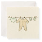 This Clothesline Gift Enclosure is printed and hand-glittered in Memphis, TN. Hand crafted artwork, full color ink printed on natural white paper, hand-glittered, and paired with a vellum envelope. Book-folded enclosure card, blank on the inside. Paper color | natural white. Envelope color | vellum. Print process | full color. Embellishment | hand-glittered. Dimensions | 3 x 3 inches.