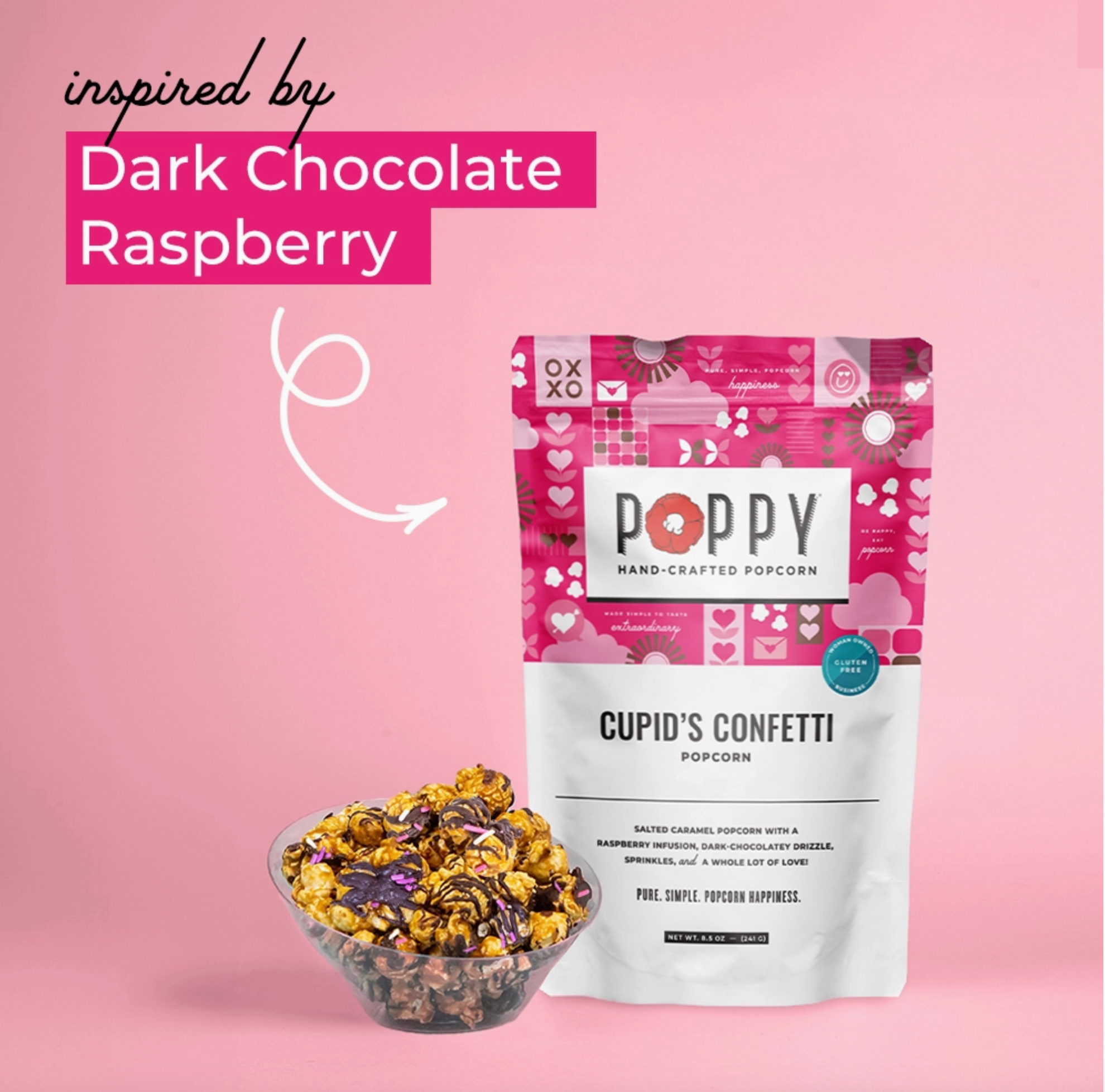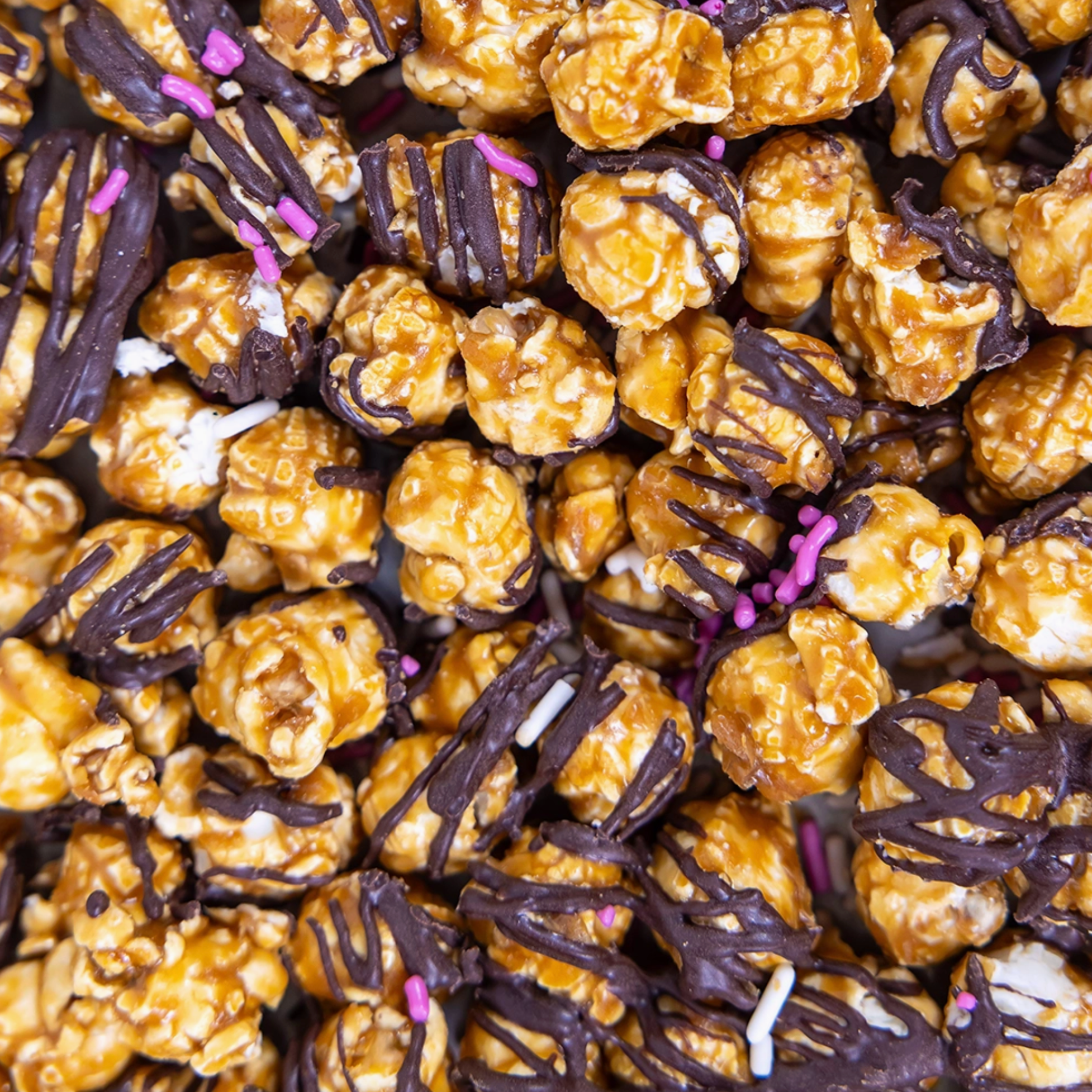 Sweet, chocolatey, and perfectly festive. Our famous Salted Caramel popcorn is infused with raspberry, drizzled in dark chocolatey goodness, and topped with colorful confetti sprinkles. Inspired by last year’s bestseller, Dark Chocolate Raspberry.