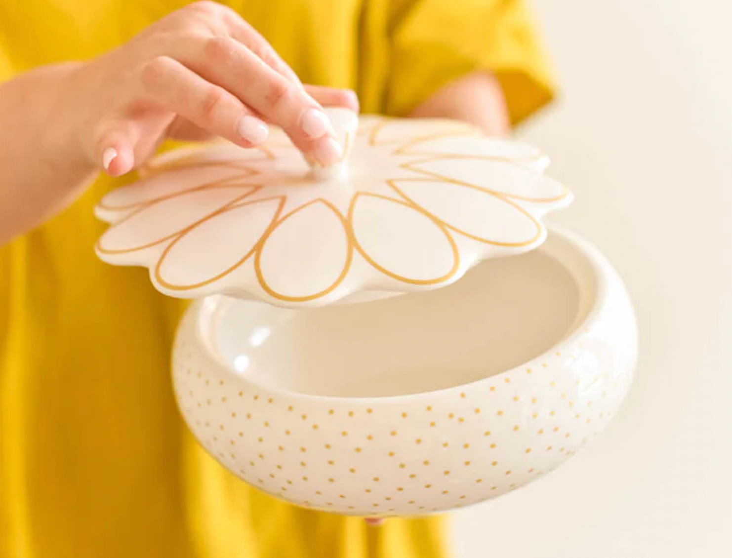 From the Deco Gold Collection by Coton Colors, this covered bowl features: