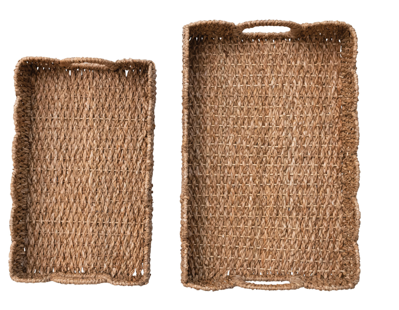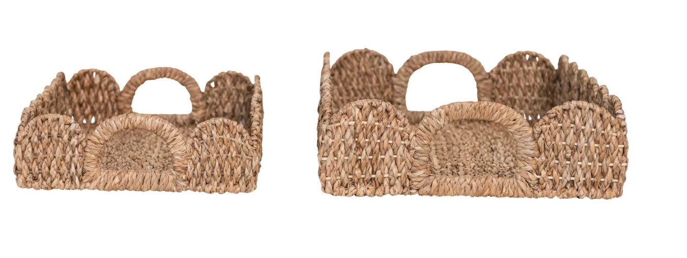 Decorative Braided Bankuan Trays w/ Handles & Scalloped Edge
