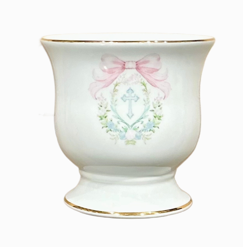 Easter Cross w/ Floral Laurel and Bow Small Cachepot