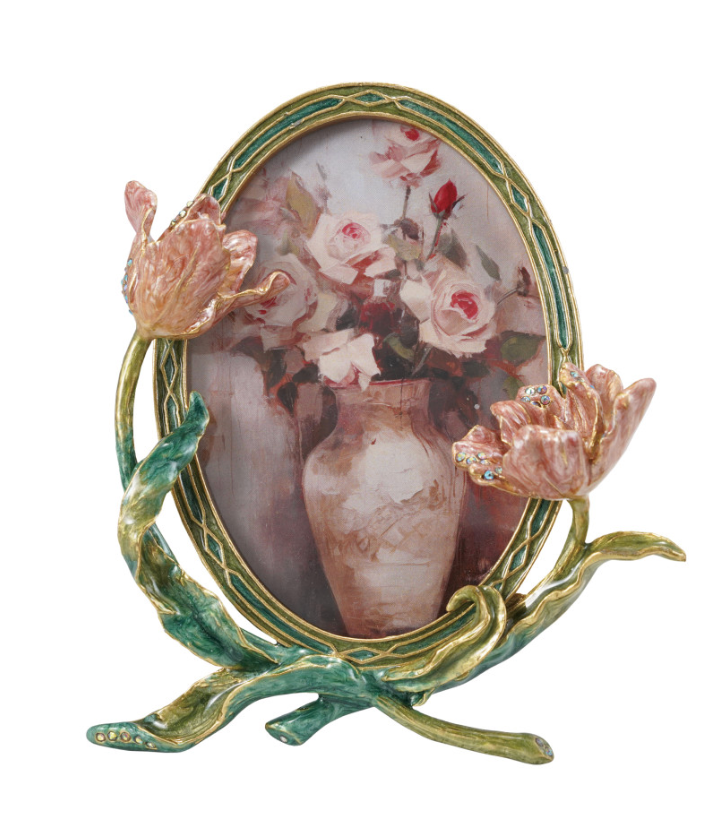 Enameled Metal Photo Frame w/ 3D Flowers & Jewels