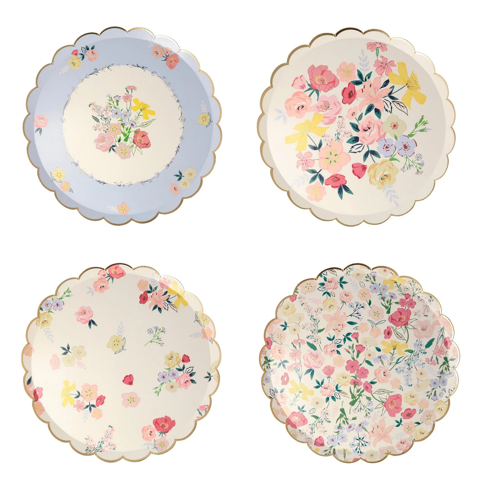 Looking for pretty plates for your party? This elegant English Garden side plates are perfect for a tea party, engagement, wedding or anniversary. Each pack features four gorgeous floral designs with stunning gold foil detail.