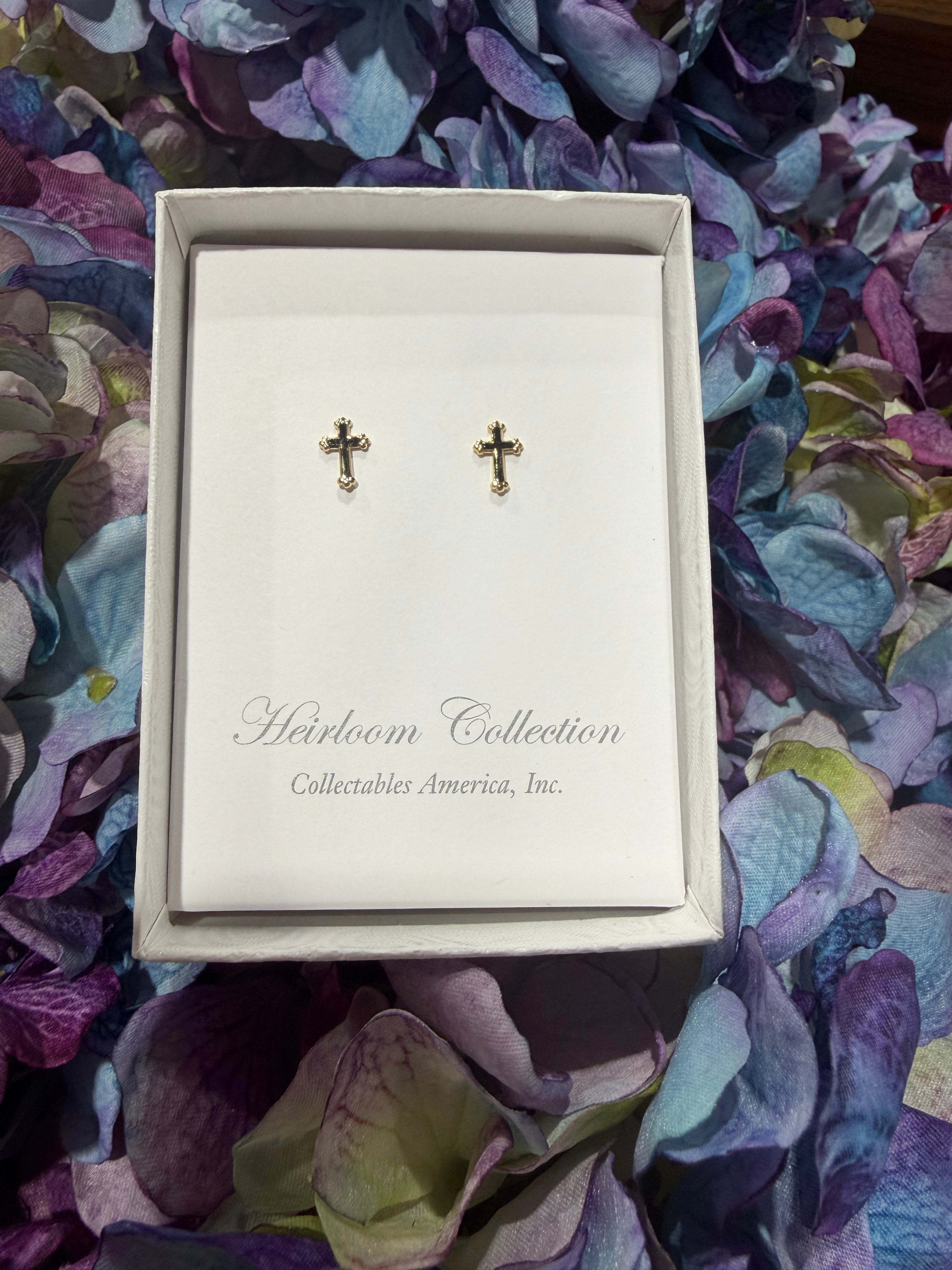 Elegant gold enamel cross earrings that blend timeless spiritual symbolism with contemporary style. Each earring features a delicate cross design finished in rich gold tones with smooth enamel detailing for a polished, refined look. Perfect for everyday wear or special occasions, these versatile pieces add a meaningful touch to any outfit. Lightweight and comfortable for all-day wear.