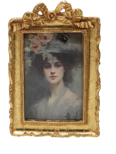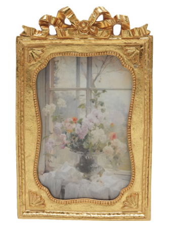 Display your cherished memories in timeless elegance with this stunning gold-finished resin photo frame. The delicate bow accent adds a touch of sophistication and charm, making it perfect for weddings, anniversaries, or special celebrations. Crafted from durable resin with a lustrous gold finish, this frame complements any décor style while protecting your favorite photos. An ideal gift for those who appreciate refined, decorative home accents.