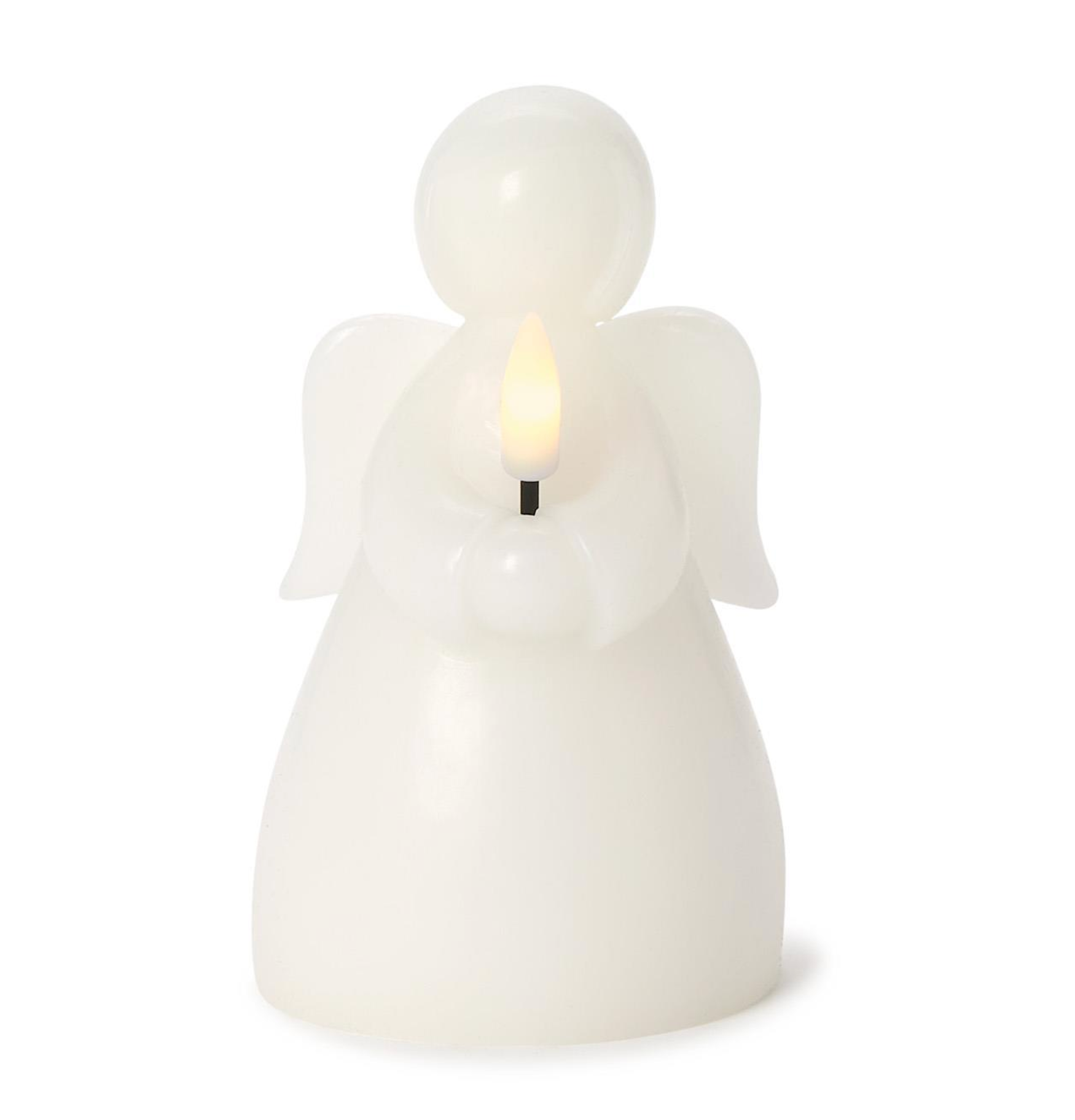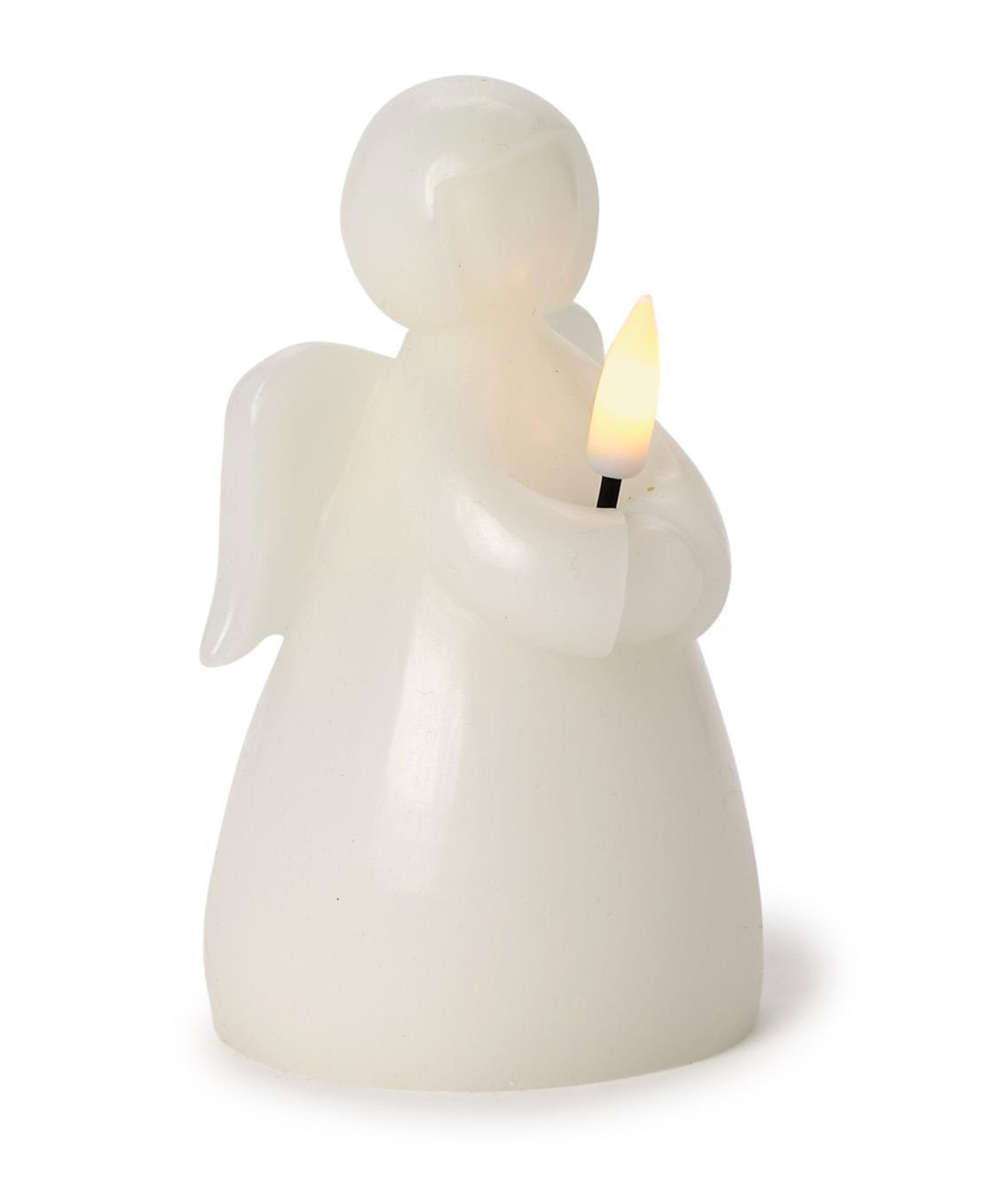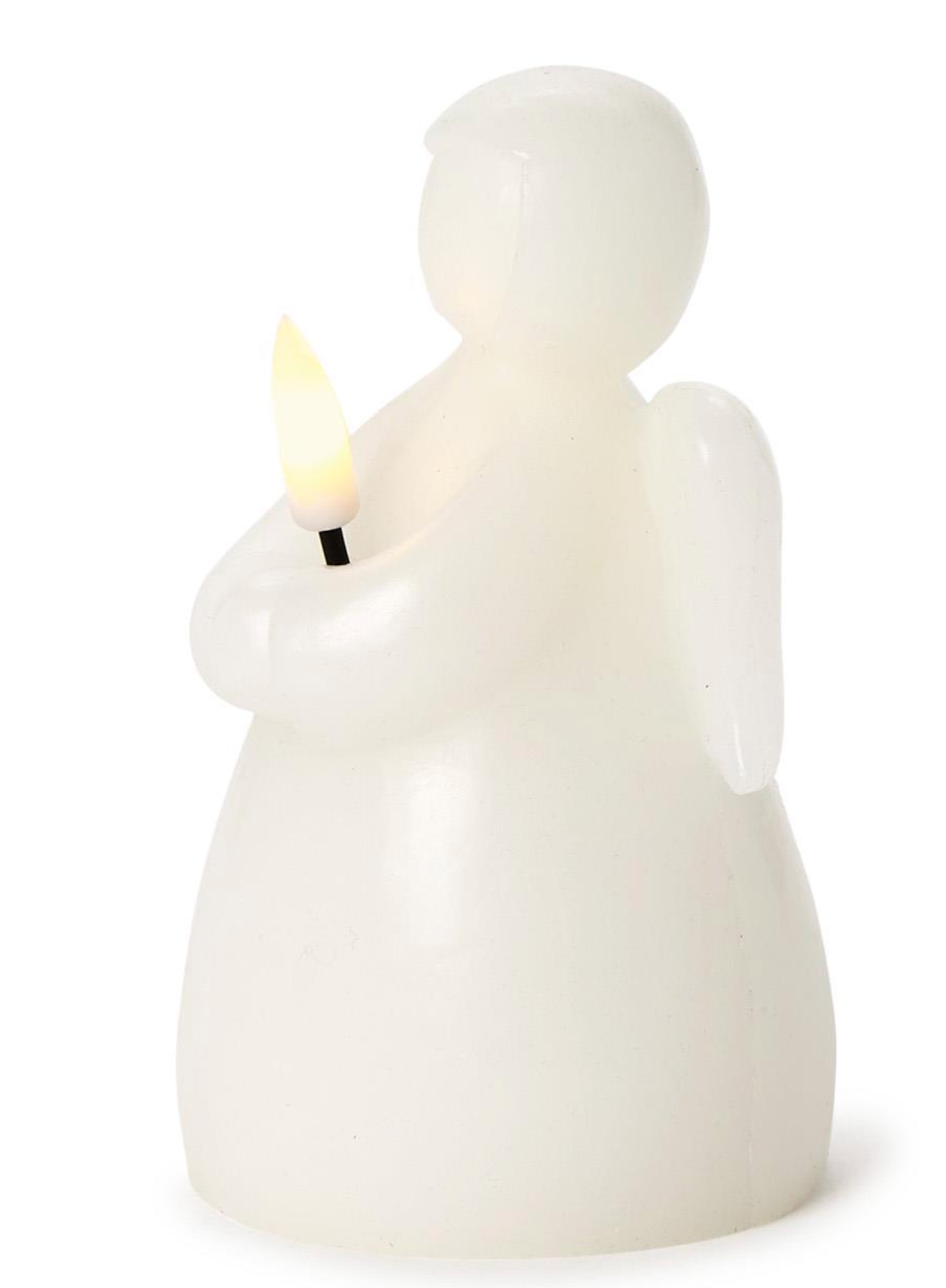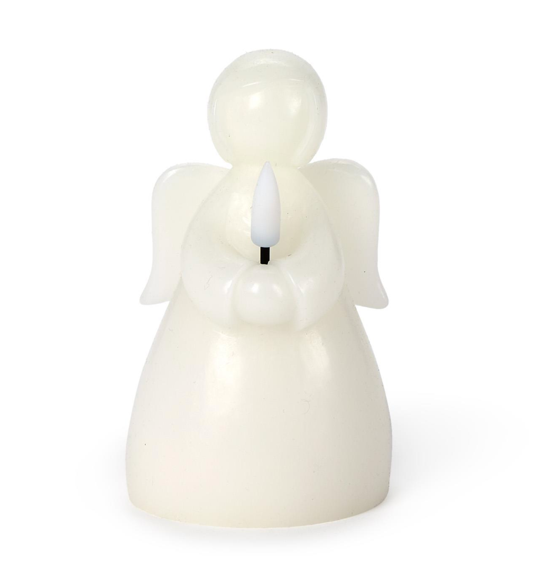 This serene LED angel candle brings a gentle glow to any space with its flameless design. Made from wax and plastic, it mimics the soft ambiance of a real candle while ensuring safety. The angel holds a flickering LED light, creating a peaceful and comforting display.