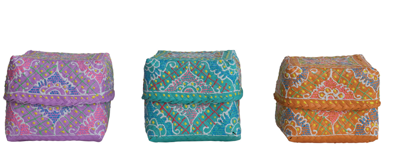 Elevate your storage with these charming hand-painted bamboo containers featuring secure lids. Each piece showcases unique artistic details, blending natural bamboo craftsmanship with vibrant, custom designs. Perfect for organizing kitchen essentials, storing pantry staples, or displaying on shelves as decorative accents. The durable bamboo construction ensures long-lasting use, while the fitted lids keep contents fresh and protected. Ideal for eco-conscious homes seeking both functionality and aesthetic appeal.