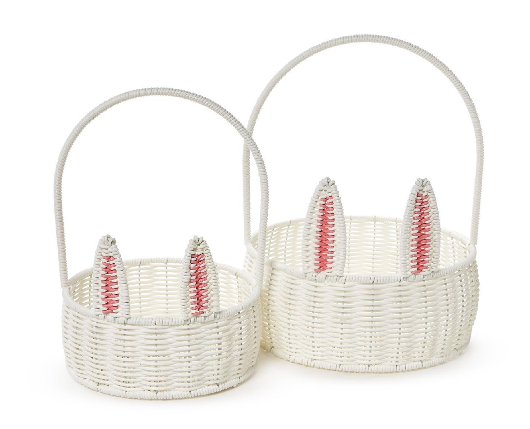 Hand-Woven Faux Wicker Easter Bunny Baskets with Pom-Pom Tail and Handles