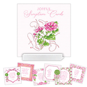 Joy Pink Floral And Topiaries Scripture Cards 4X4 Acrylic Block Stand