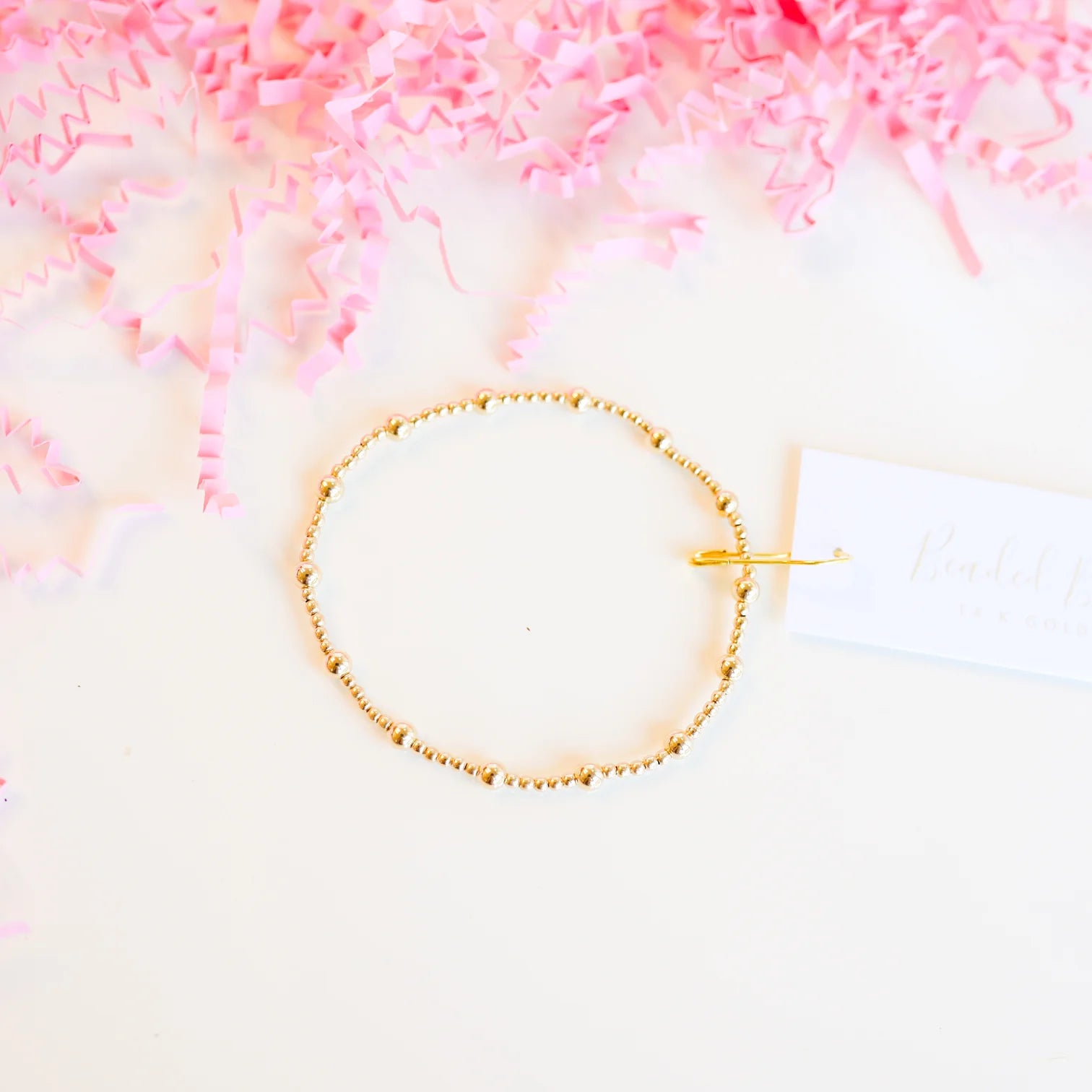 2mm & 4mm 14 K gold filled beaded bracelet! The perfect dainty addition to any stack.
