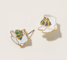 Celebrate the vibrant spirit of Mardi Gras with these striking stud earrings, featuring miniature boot designs in bold, festive hues. Perfect for adding a touch of New Orleans charm to your everyday style or special occasion ensemble, these sophisticated accessories bring playful elegance to any look. Lightweight and comfortable for all-day wear, they're an ideal choice for party enthusiasts and Mardi Gras devotees alike.