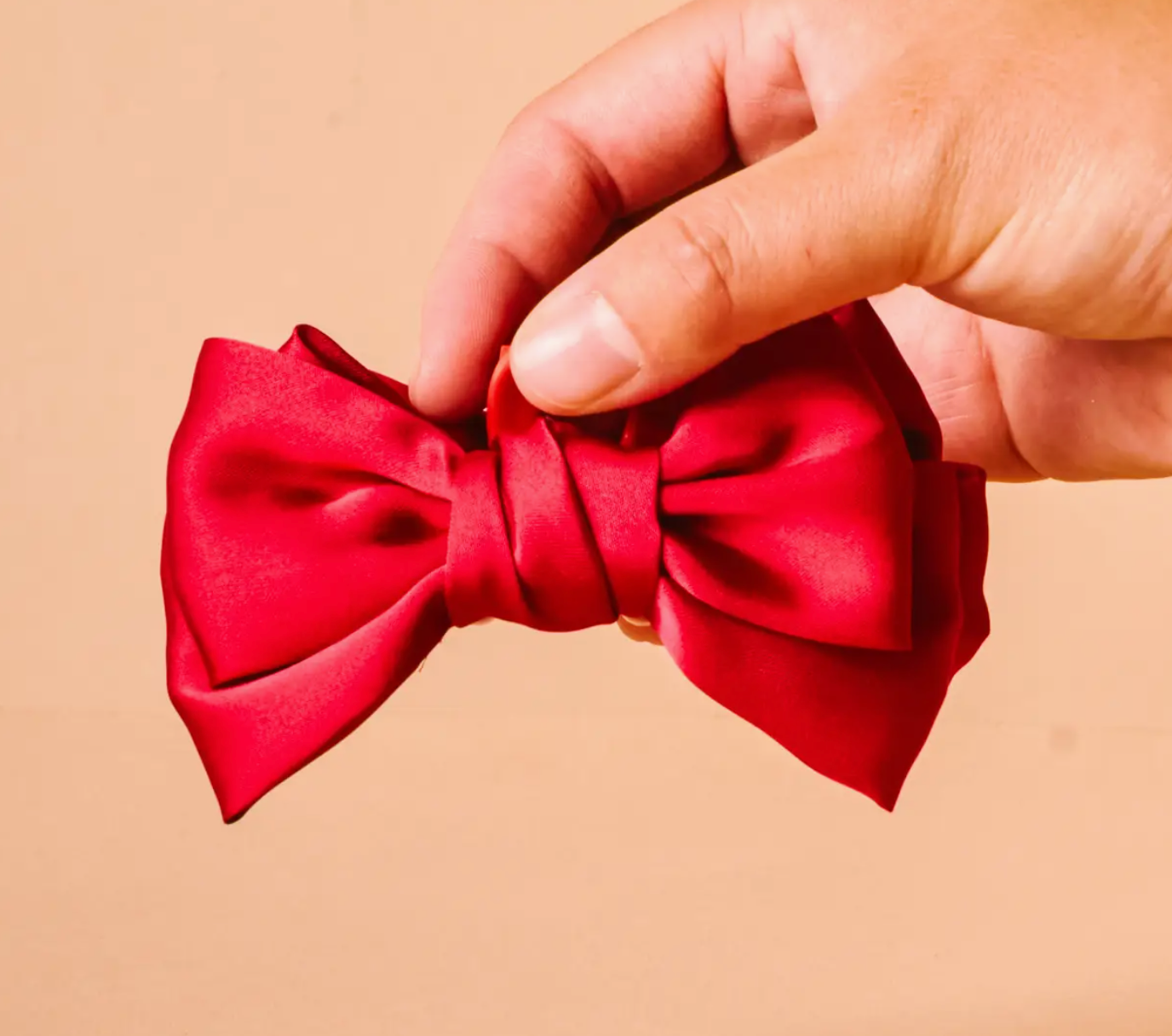 Mini Satin Bow Claw Clip-Red