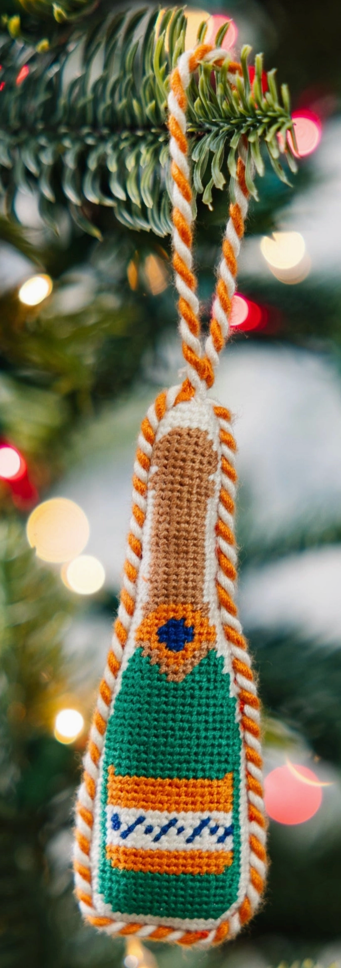 Needlepoint Icon Ornament - Champagne Bottle