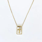 This 18k gold-plated necklace features a unique coastal grace with a cross and square pendant, adorned with a beautiful shell pearl. The adjustable length allows for a perfect fit. Elevate your style and embrace the peaceful beauty this necklace brings.