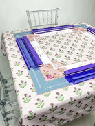 Get ready to elevate your Mahjong sessions with our Mahjong Instructional Tablecloth, showcasing a beautiful Purple Thistle print on a light pink canvas. Created in collaboration with the talented Catherine Cartie.