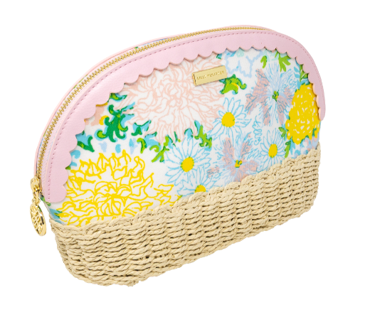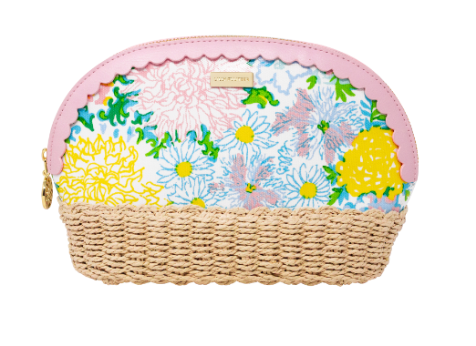 Add a pop of paradise to your day with the Lilly Pulitzer Raffia Pouch in the Lilly Garden Home print. Featuring a textured raffia base, scalloped leatherette trim, and a chic gold zipper charm, it’s the perfect blend of whimsy and elegance.