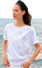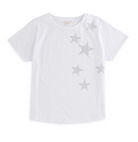 Get your sparkle on with the Stars T-Shirt, made from 100% soft, breathable cotton. This classic white tee features a playful cascade of shimmering silver stars that add just the right amount of glam to your casual look. Perfect for pairing with denim, shorts, or a breezy skirt, this versatile piece ensures you shine bright wherever you go.