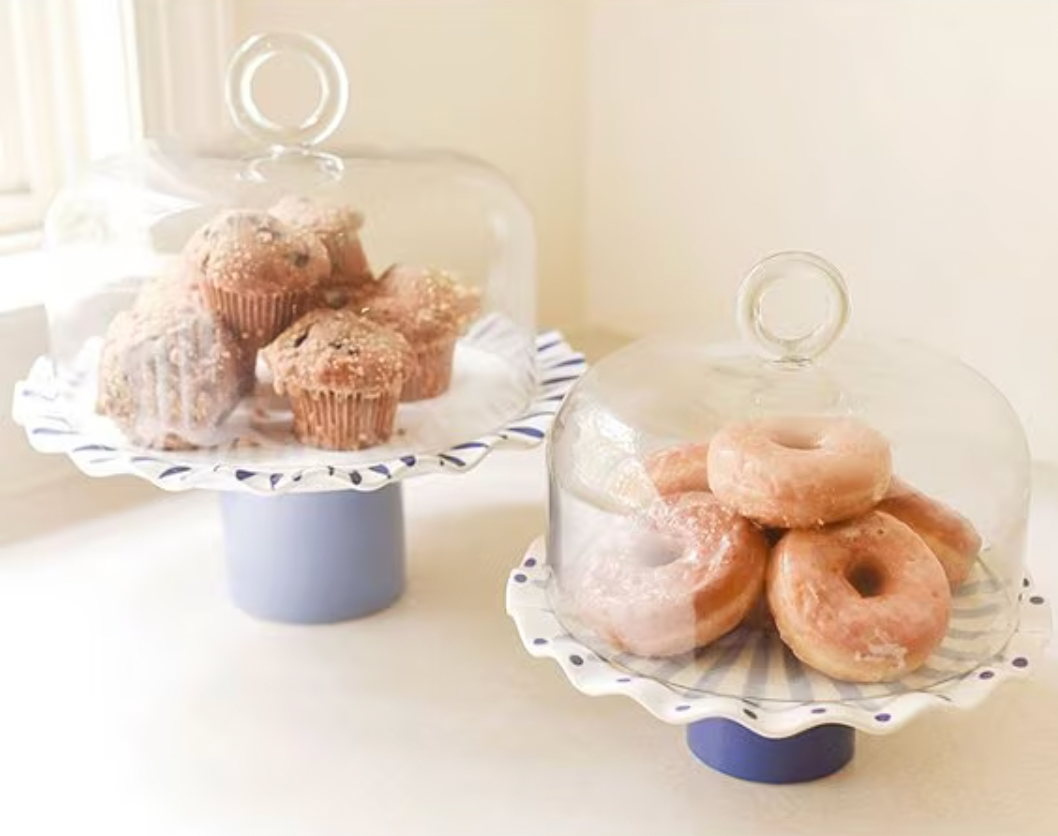 Celebrate all occasions, big and small, with our Ring Handle Glass Dome showcasing your homemade treats! The small glass dome pairs perfectly with any Coton Colors cake stand and is sized to fit under a standard countertop height. The one-piece glass masterpiece beautifully covers freshly baked goods to create a finished look on any tablescape.