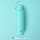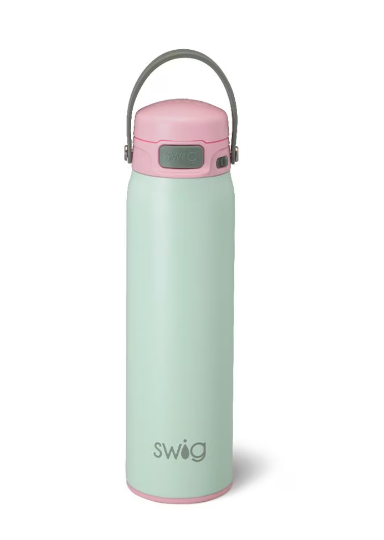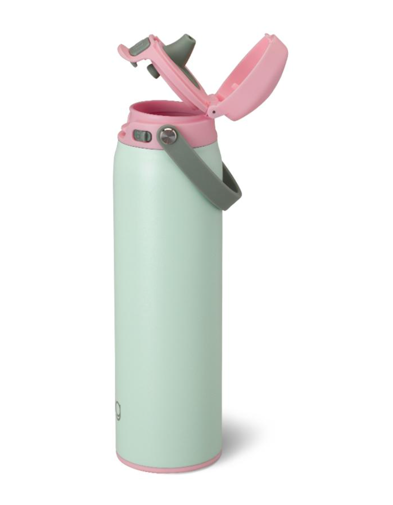 This innovative push-button cap with locking mechanism makes hydrating on the go leak free and worry free. Pop open the top to easily sip and flip open the cap to refill without the inconvenience of twisting it off. The innovative lid design gives you the option to sip freely or chug quickly. Grab-and-go flex handle is convenient for carrying on hikes and hooking in lockers.