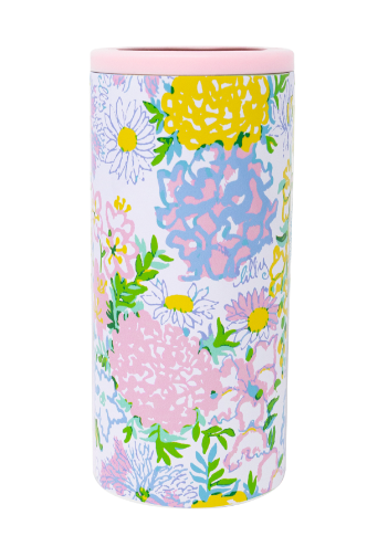 Whether lounging poolside or seaside, Lilly's skinny can holder in the Lilly Garden Home print will keep your drinks ice-cold to the very last sip. The insulated stainless steel body will snuggly hold your favorite 12-ounce skinny can beverage keeping it nice and chilled. The exterior is printed with a bold and lightly textured Lilly print for an elevated and stylish drinking experience