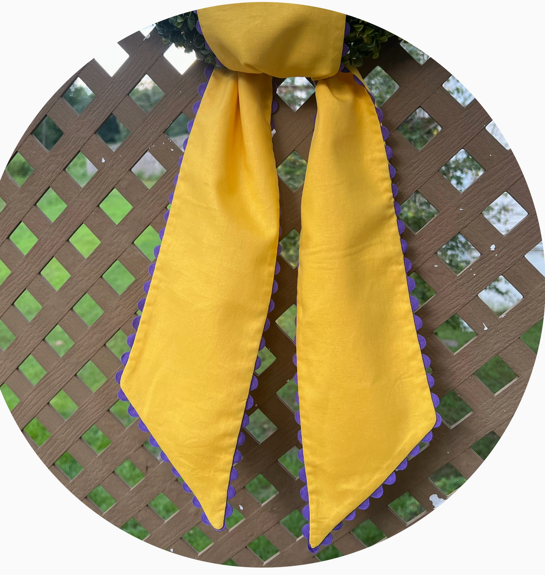 Transform your space with the Sunshine Sash with Purple Trim, a sophisticated accent piece that brings warmth and elegance to any room. Crafted from premium linen with refined trim detailing, this custom sash drapes beautifully over chairs, sofas, or windows. The vibrant purple accent complements both modern and traditional décor, adding a pop of color without overwhelming your design. Perfect for elevating your home's aesthetic with understated luxury and timeless style.